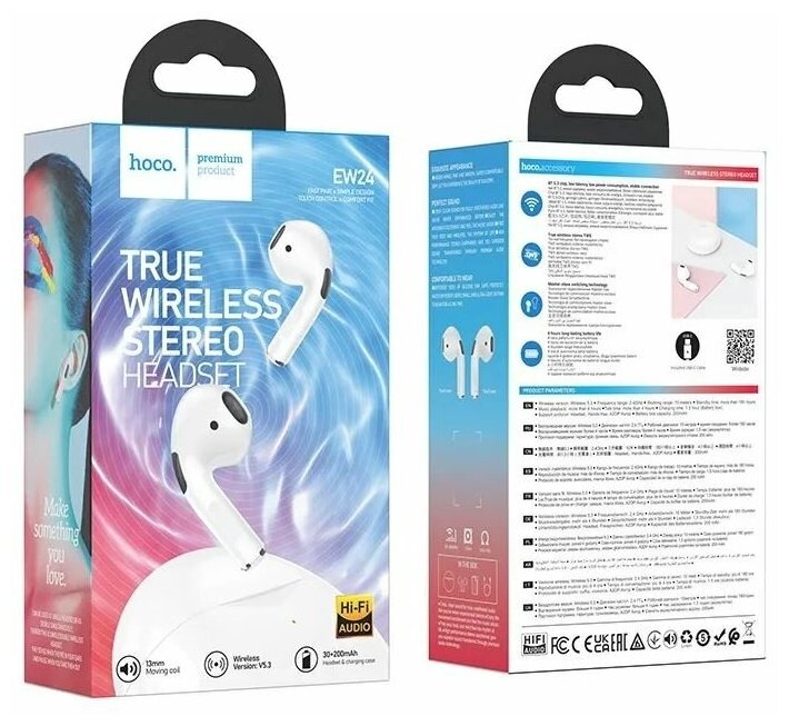 Беспроводные наушники HOCO EW24 Assist Original, Bluetooth, TWS (белые)