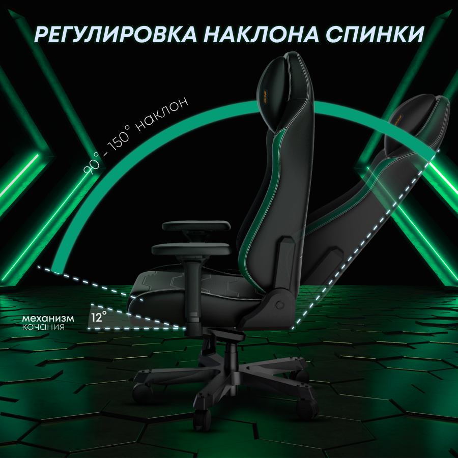 Компьютерное кресло DXRacer I-DMC/MAS2022/NE черно-зеленое, экокожа