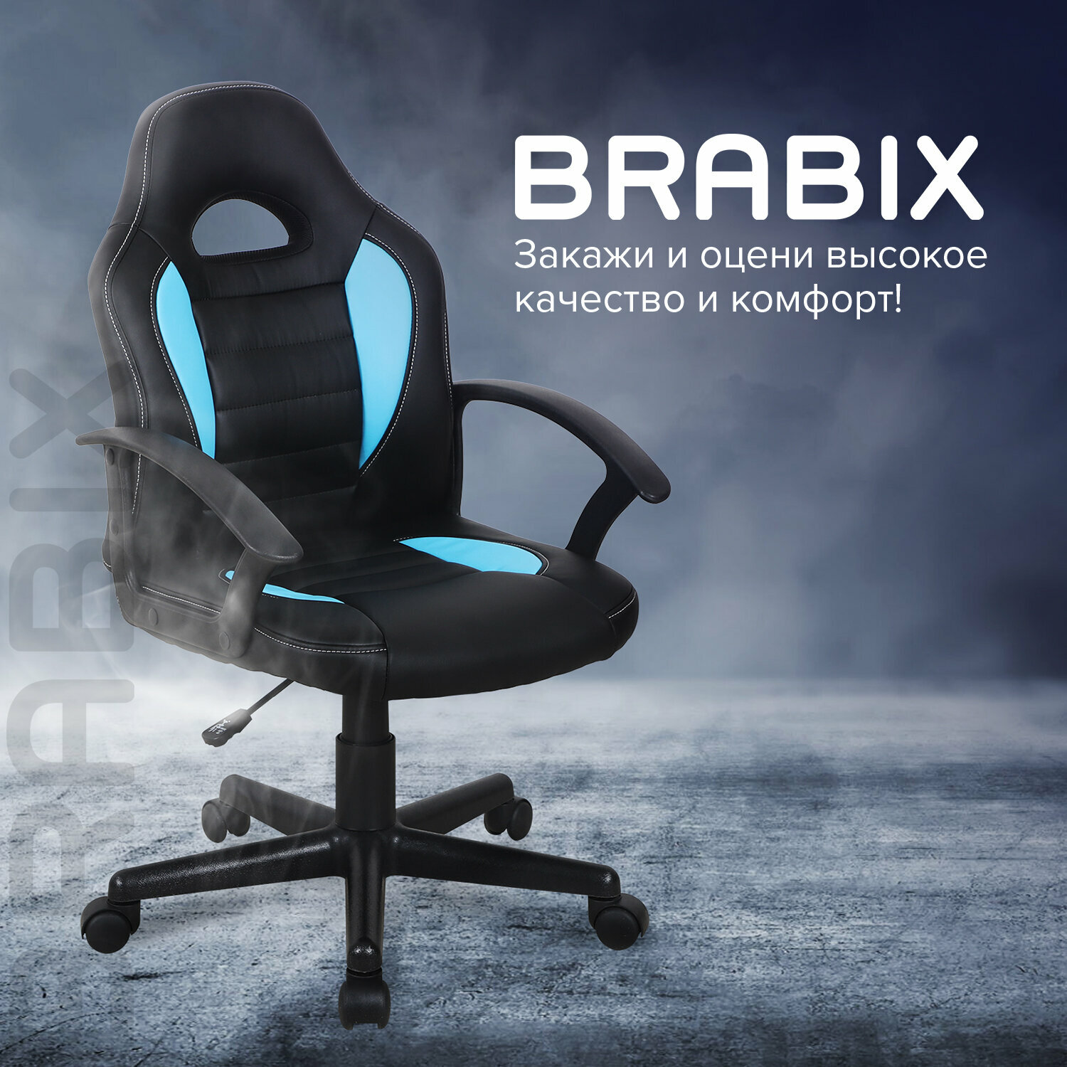 Кресло компьютерное Brabix "Spark GM-201", экокожа, черное, голубое
