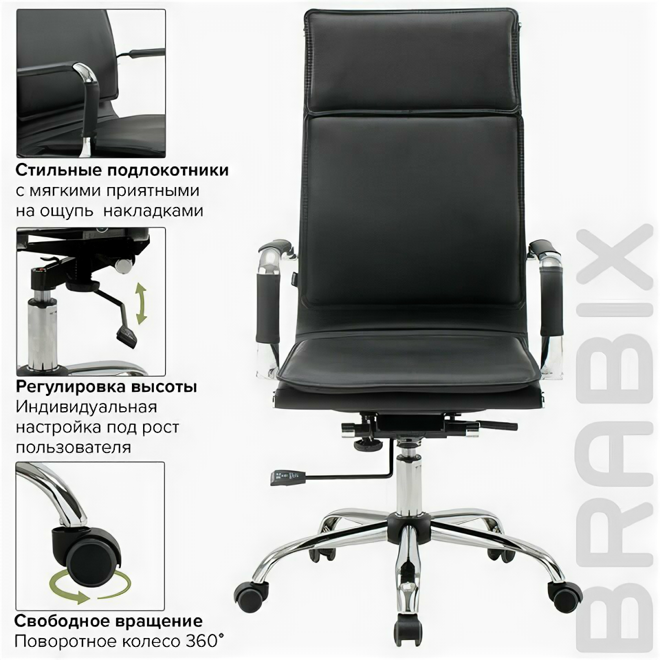 Кресло офисное BRABIX Cube EX-523 экокожа, хром, черное, 531946