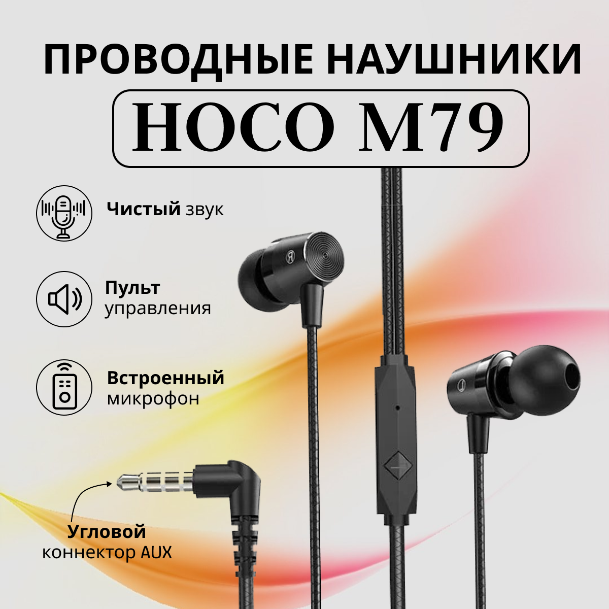 Проводные наушники HOCO M79 Cresta, Jack 3.5mm, 1.2 м, черный