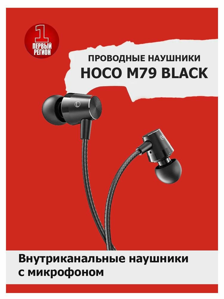 Hoco Наушники Hoco M79, проводные, вакуумные, микрофон, Jack 3.5 мм, 1.2 м, черные