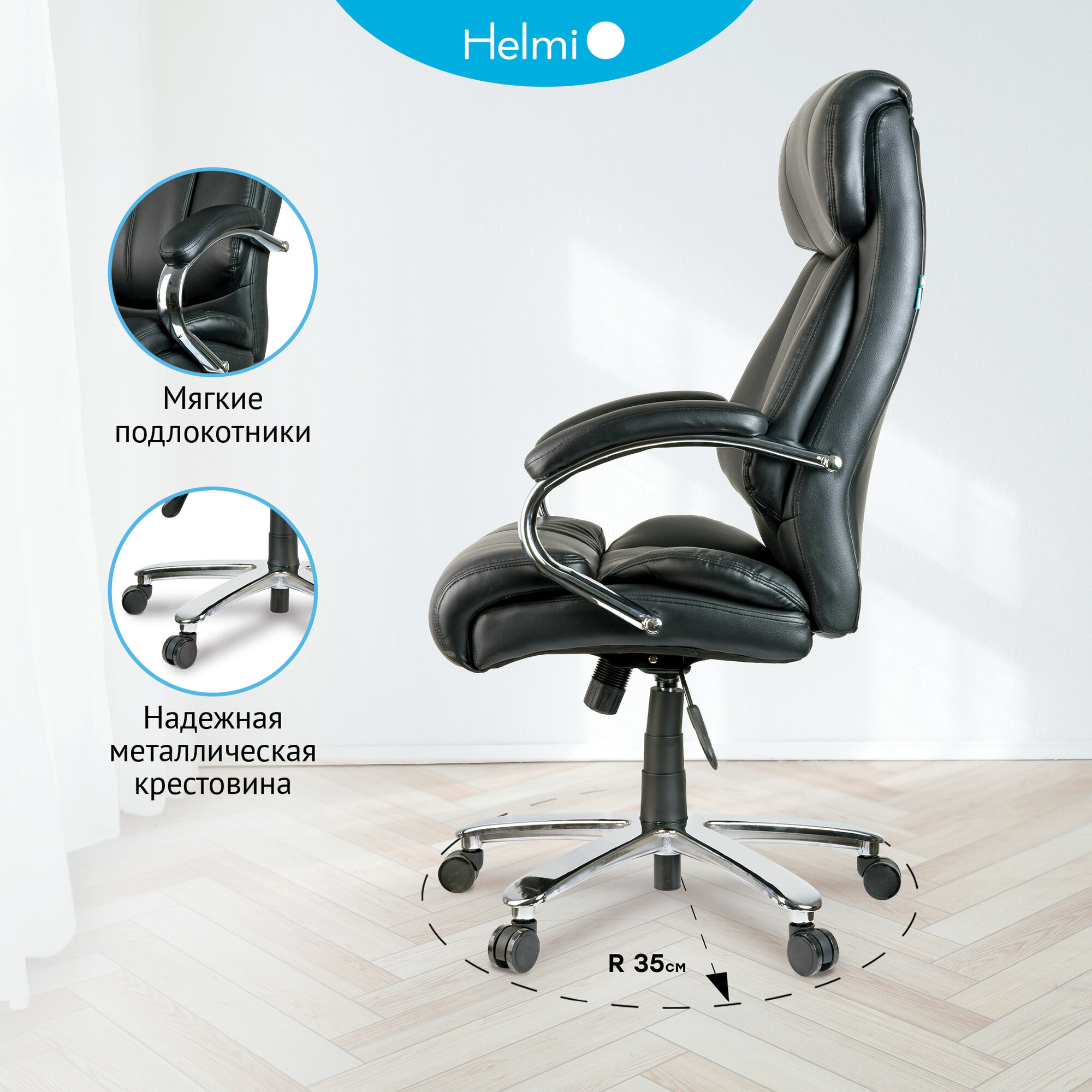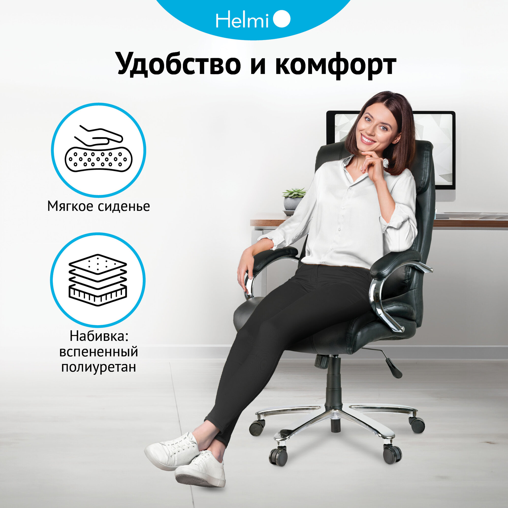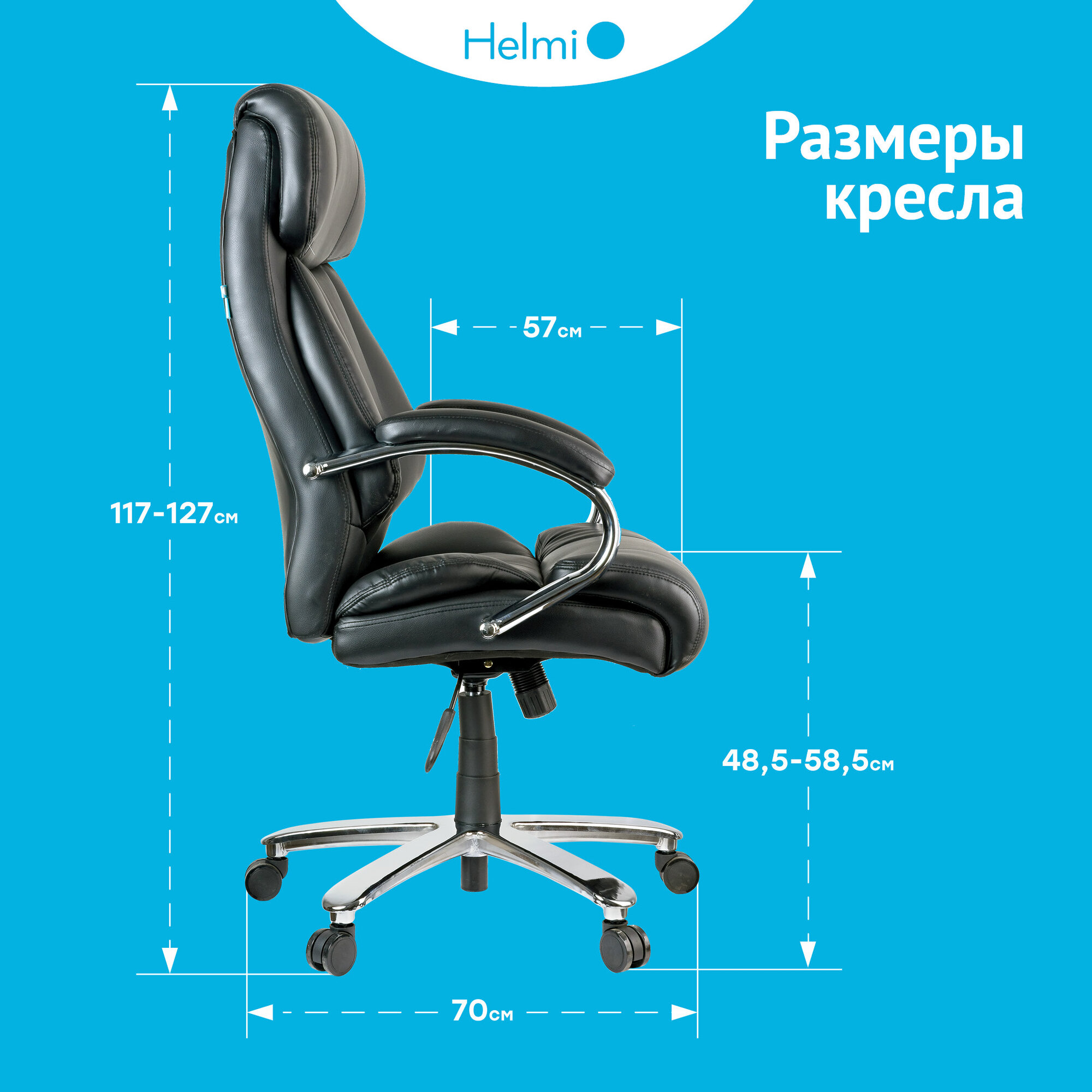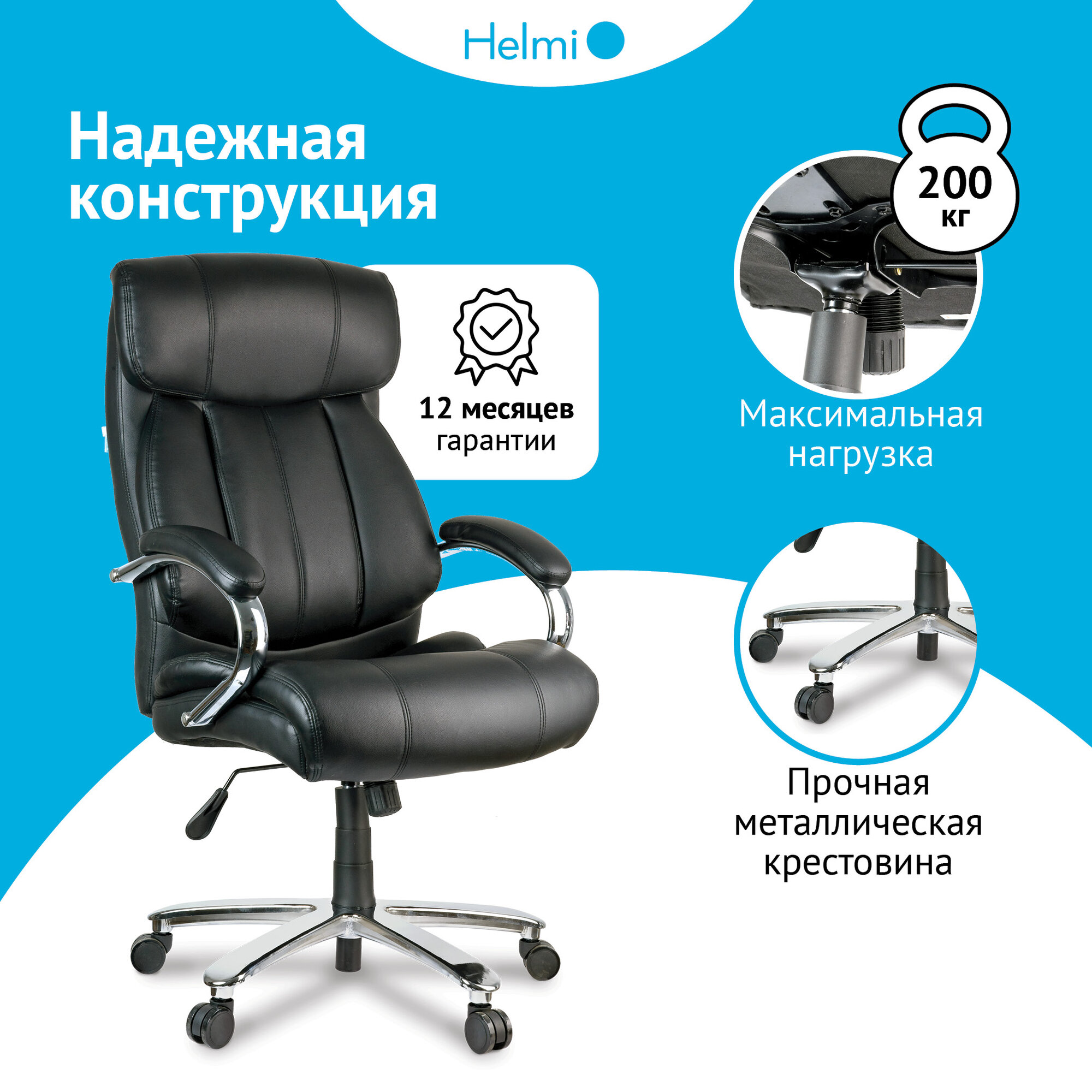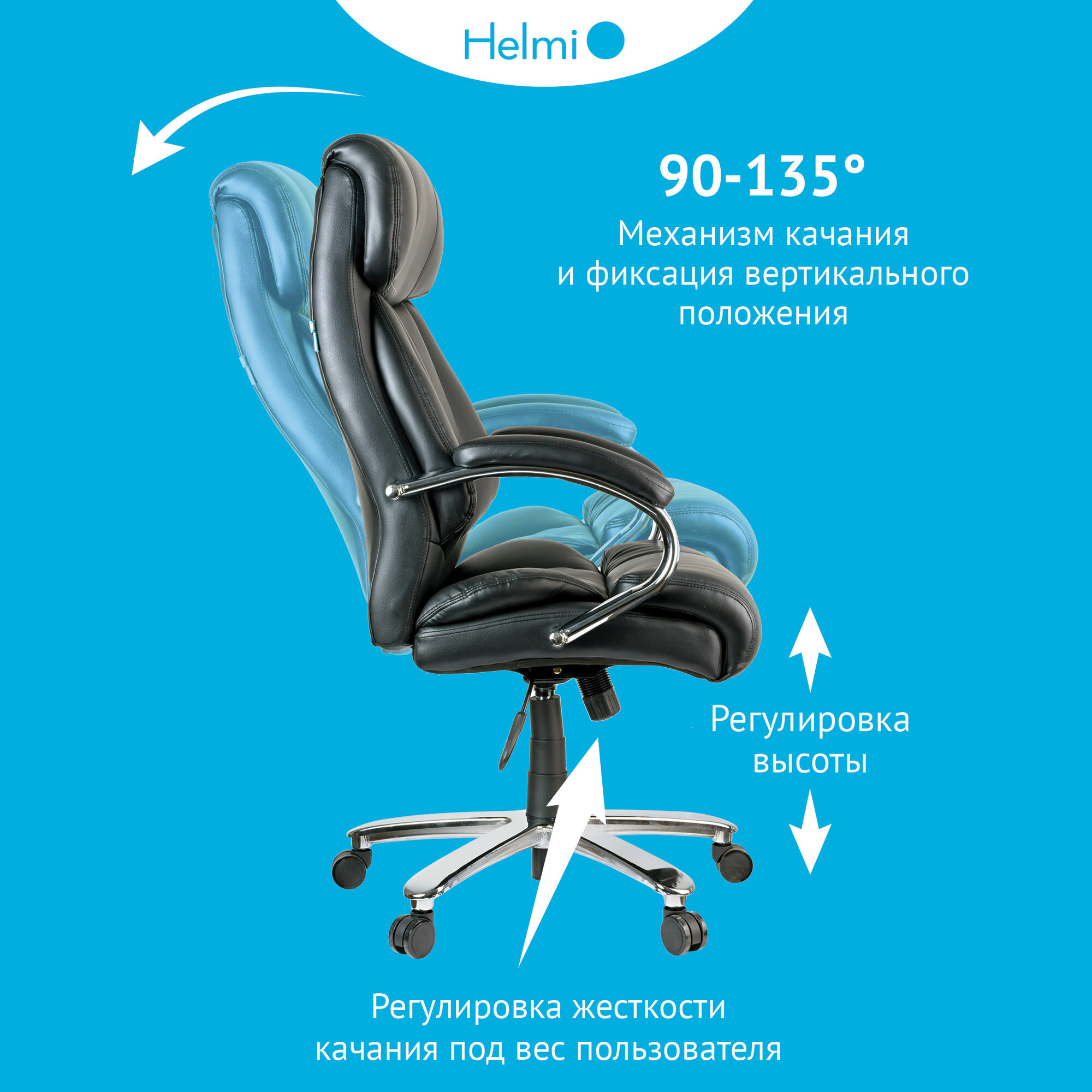 Кресло руководителя Helmi HL-ES06 "Granite" повыш. прочности, экокожа черная, хром, до 200кг интересное: