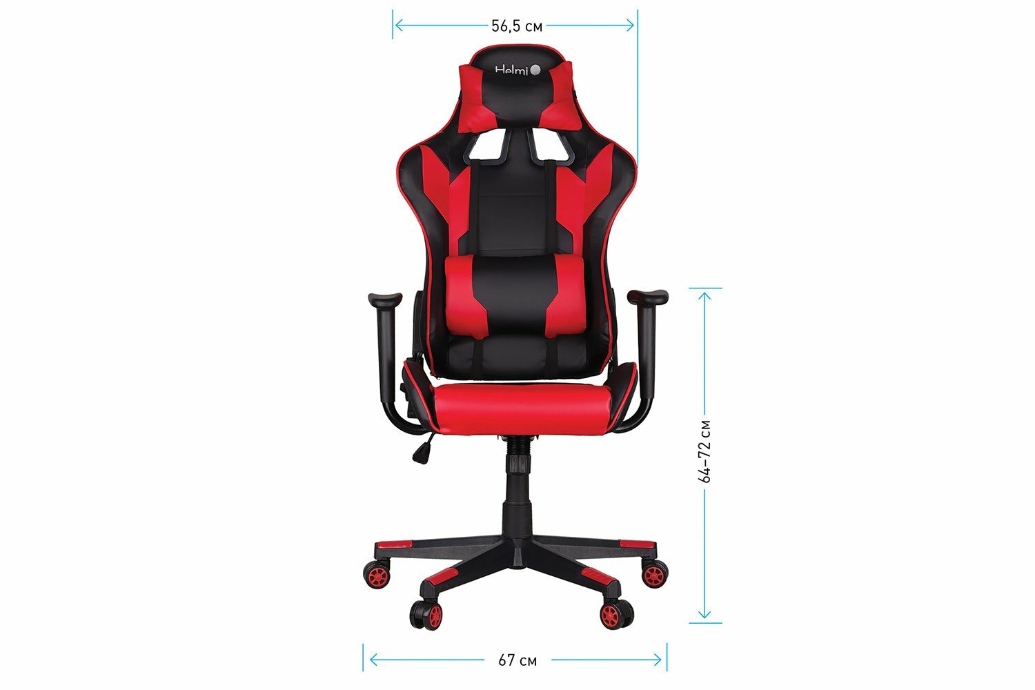 Кресло игровое Helmi "Victory", искусственная кожа, черная, красная, 2 подушки (279715) интересное: