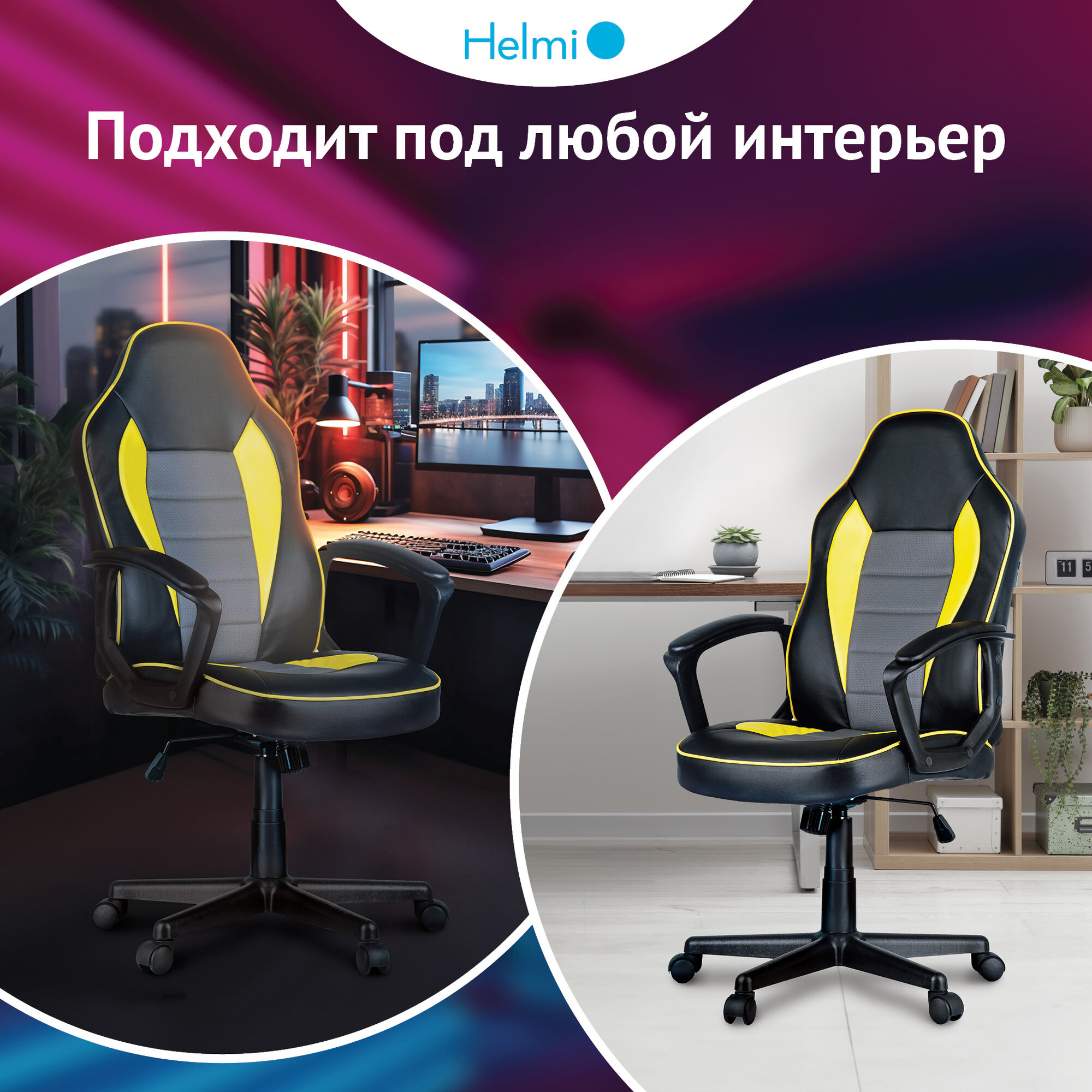 СохранитьКресло геймерское Helmi HL-S08 "Rally", экокожа черная/серая/желтая интересное: