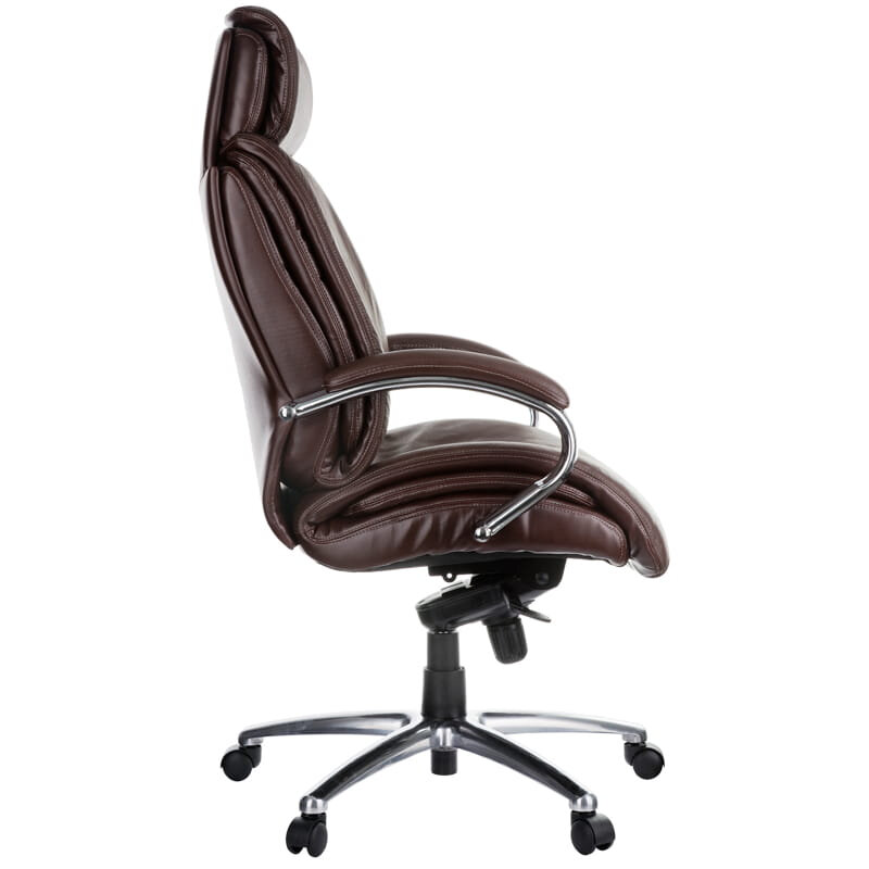 Кресло руководителя Helmi HL-ES03 "Invincible" повышенной прочности, кожа коричневая, мультиблок, хром, до 250 кг