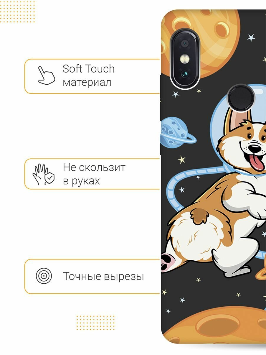 Матовый Soft Touch силиконовый чехол на Xiaomi Redmi Note 5, Note 5 Pro, Сяоми Редми Ноут 5, Ноут 5 Про с 3D принтом "CosmoCorgi" черный