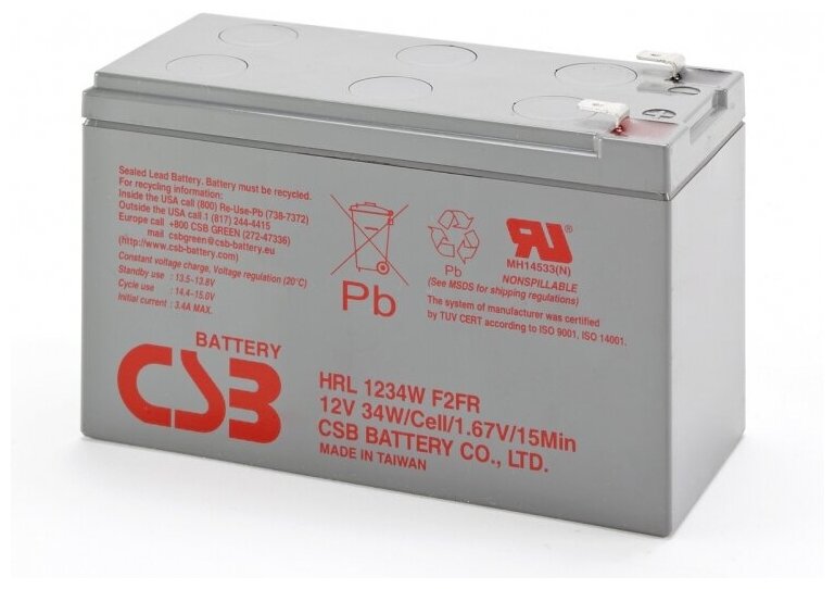 Батарея CSB HRL 1234W 12В, 9Ач, 151х65х98.3мм (с увеличенным сроком службы 10 лет)
