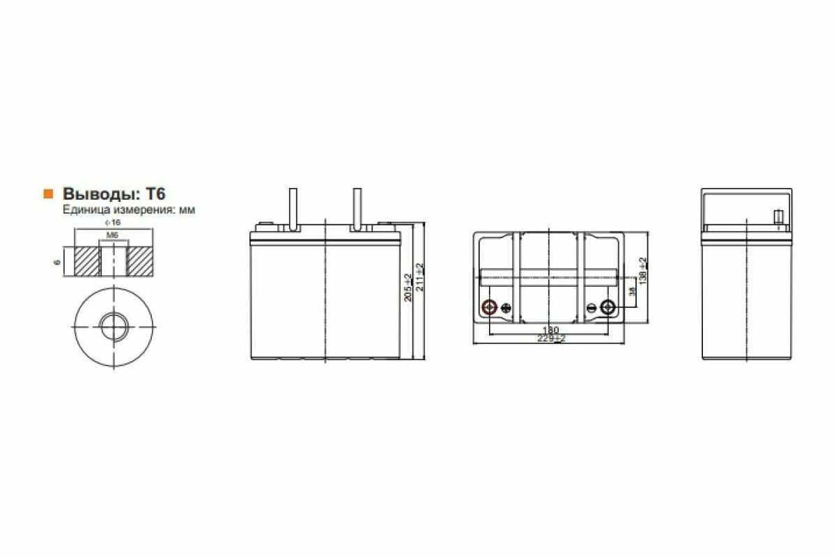 | Высота с учетом полюса (контактного вывода) | 211 мм |