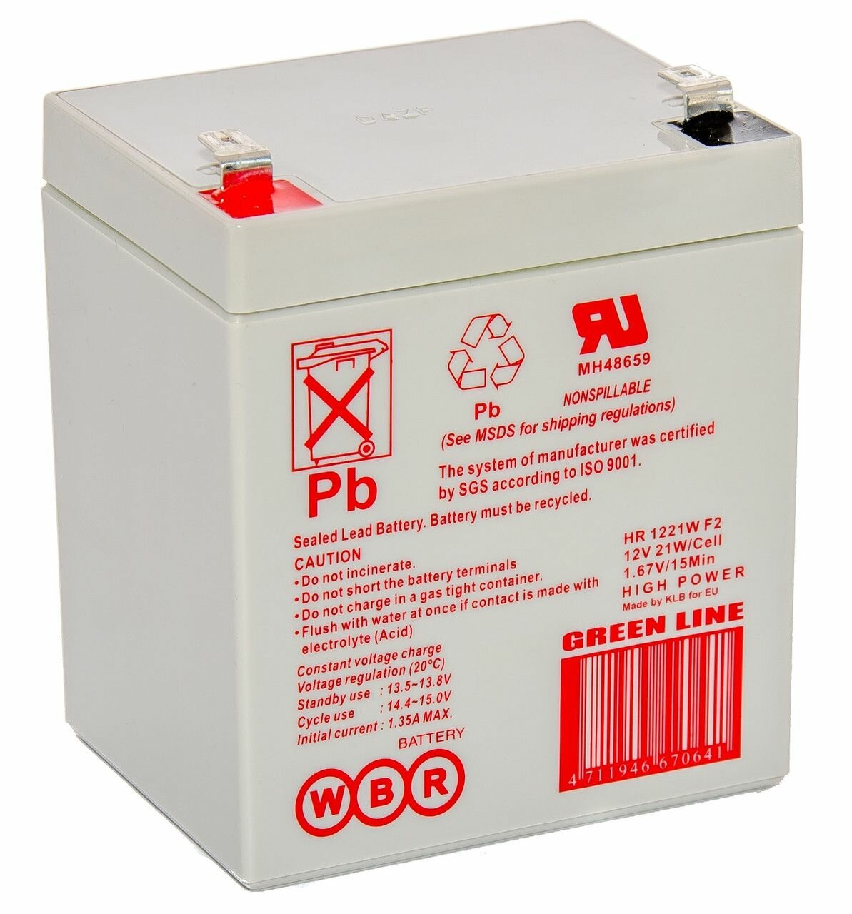 Аккумуляторная батарея WBR, HR1221W, 12V, 5.6Ah, влагозащита