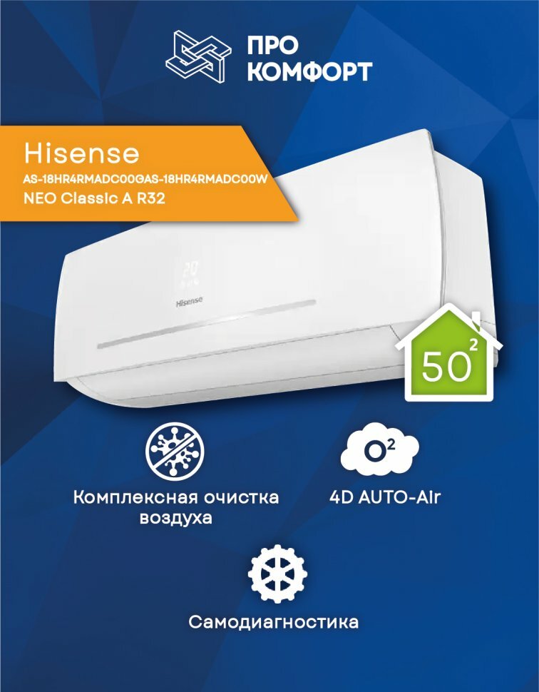 Сплит-система настенная Hisense AS-18HR4RMADC00G/AS-18HR4RMADC00W NEO Classic A R32
