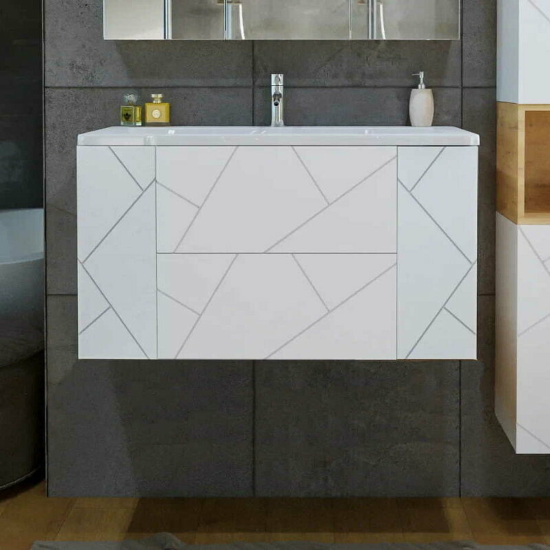 Купить Тумба под раковину Бриклаер Кристалл 100 4627125415920 подвесная Белая
