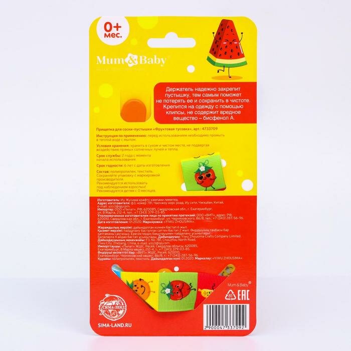 Mum&Baby Держатель для пустышки «Фруктовая тусовка», на ленте интересное: