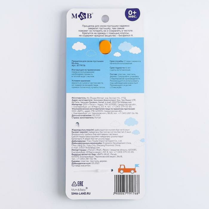 Mum&Baby Держатель - игрушка для соски - пустышки My boy интересное:
