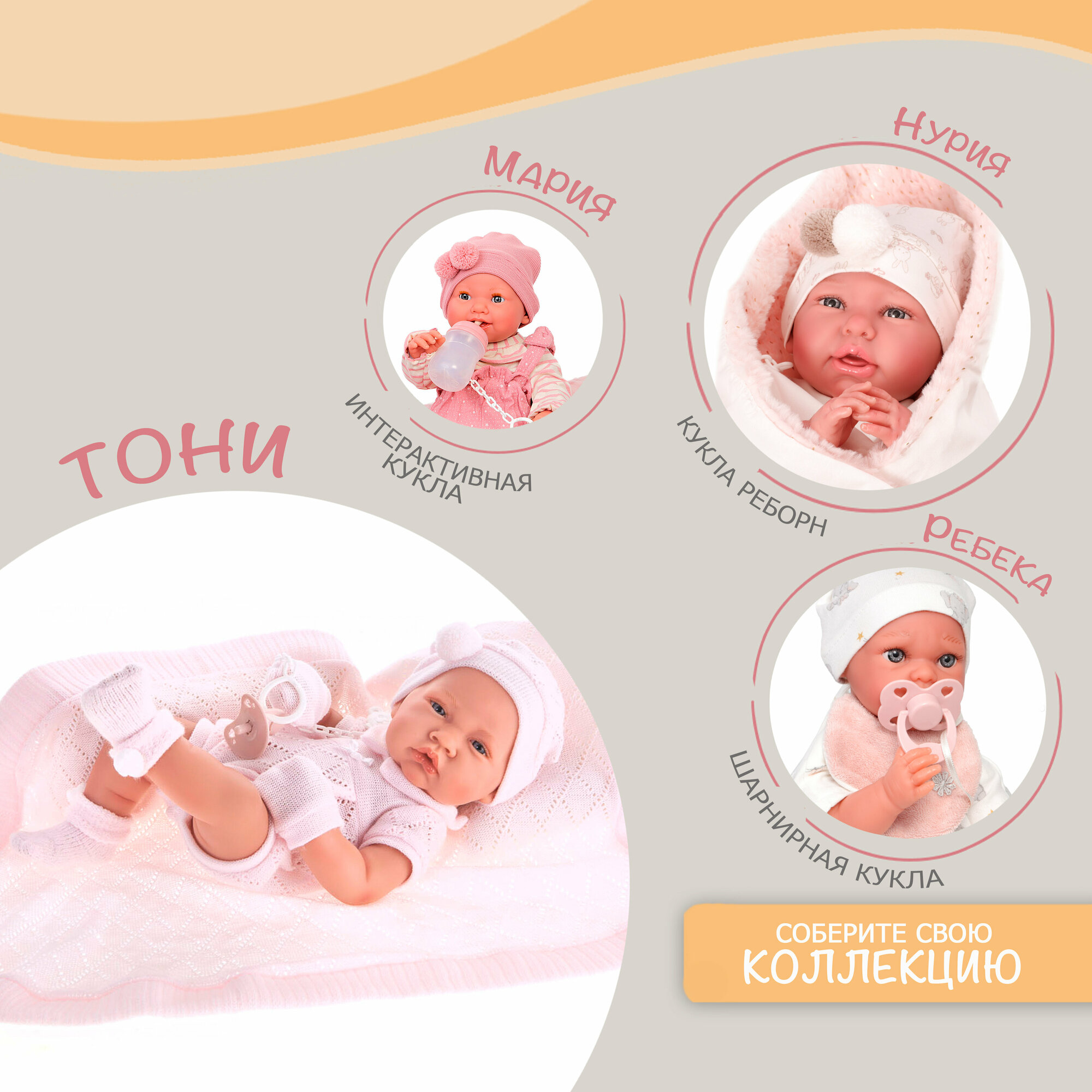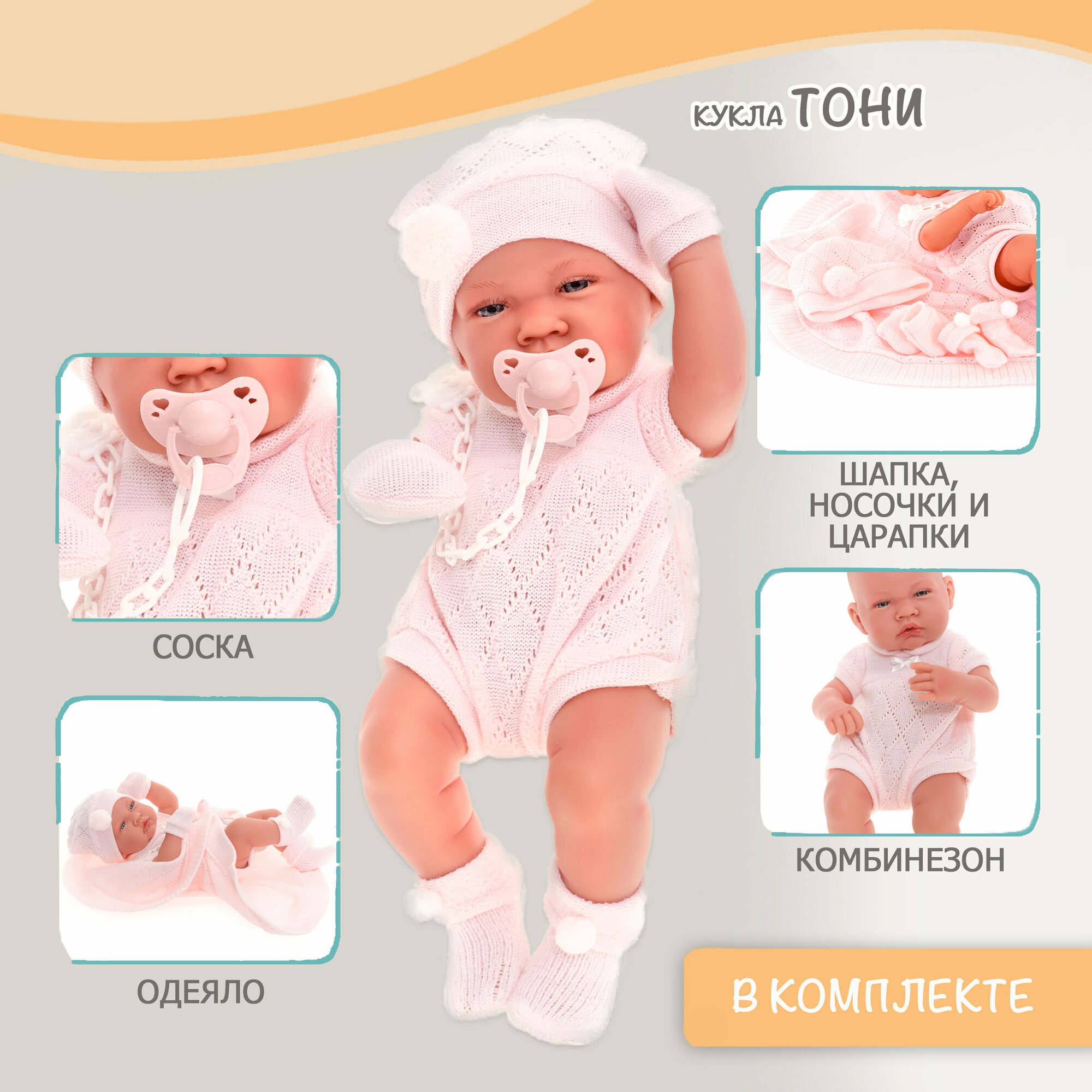 50064 Кукла пупс Тони в розовом, 42 см, виниловая интересное: