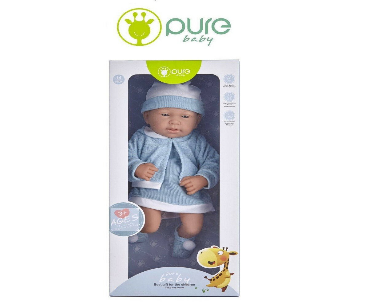 Пупс "Pure Baby", 35см, в кофточке, платье и шапочке, в коробке