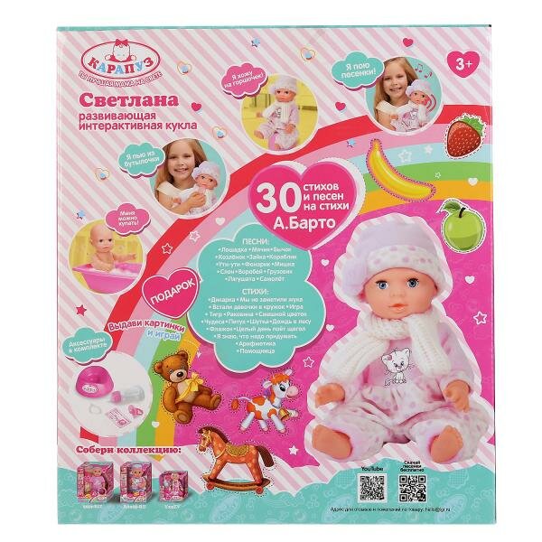 Игрушки Карапуз Y25NN-35671 Светлана 25см пьет, писает, аксесс., стихов барто интересное: