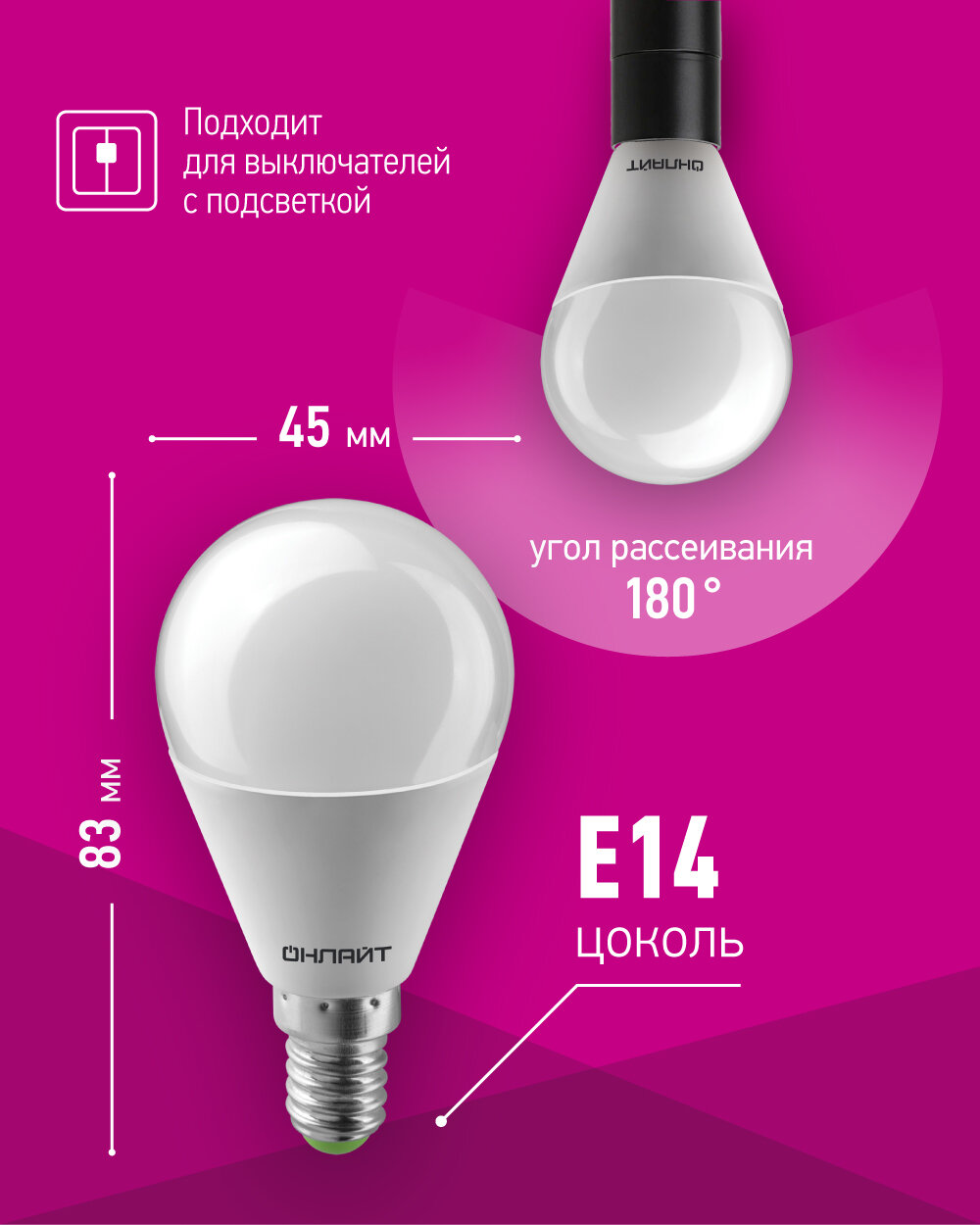 Онлайт шар G45 E14 10W(800lm)6500K6K88х46 OLL-G45-10-230-6.5K-E14 61967 (арт. 661169)