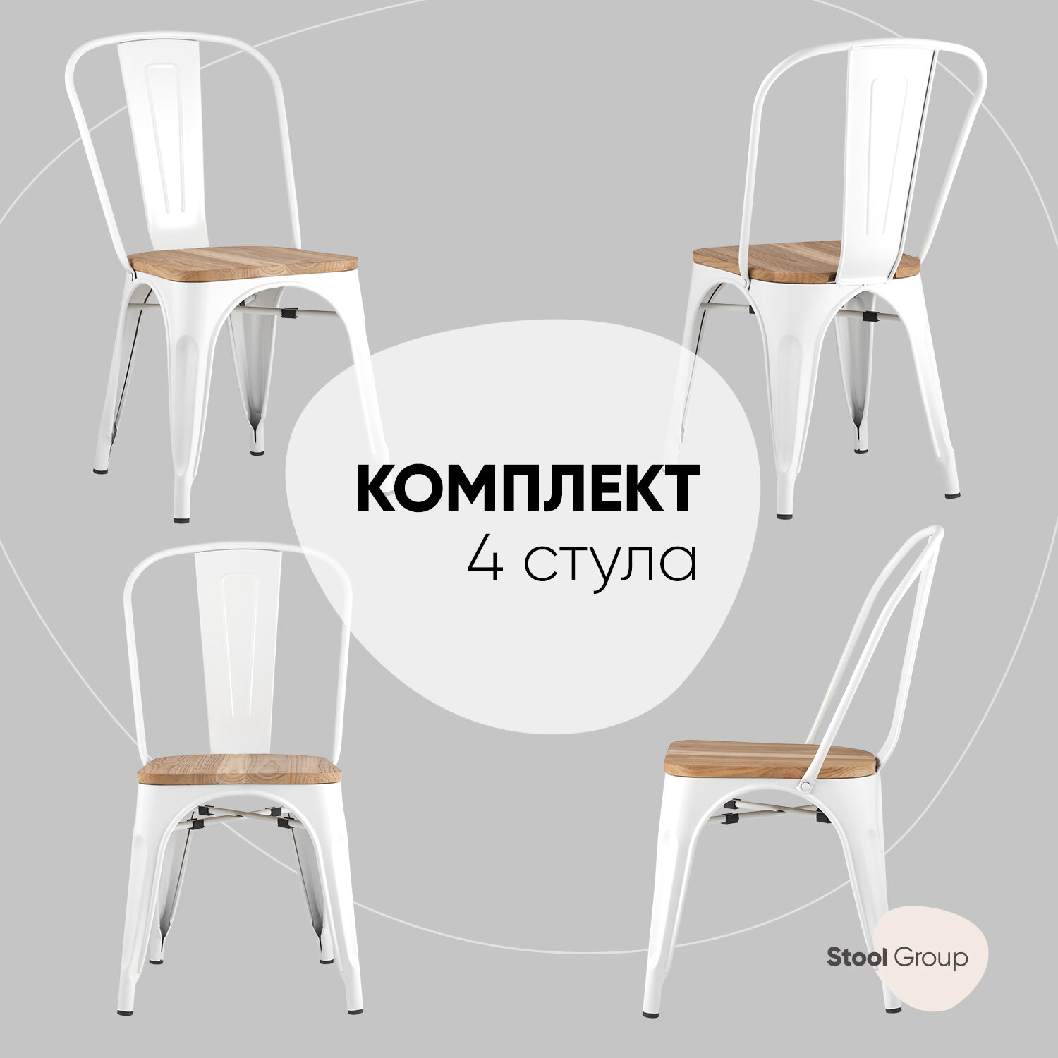 Купить Стул TOLIX белый глянцевый + светлое дерево (комплект 4 шт)