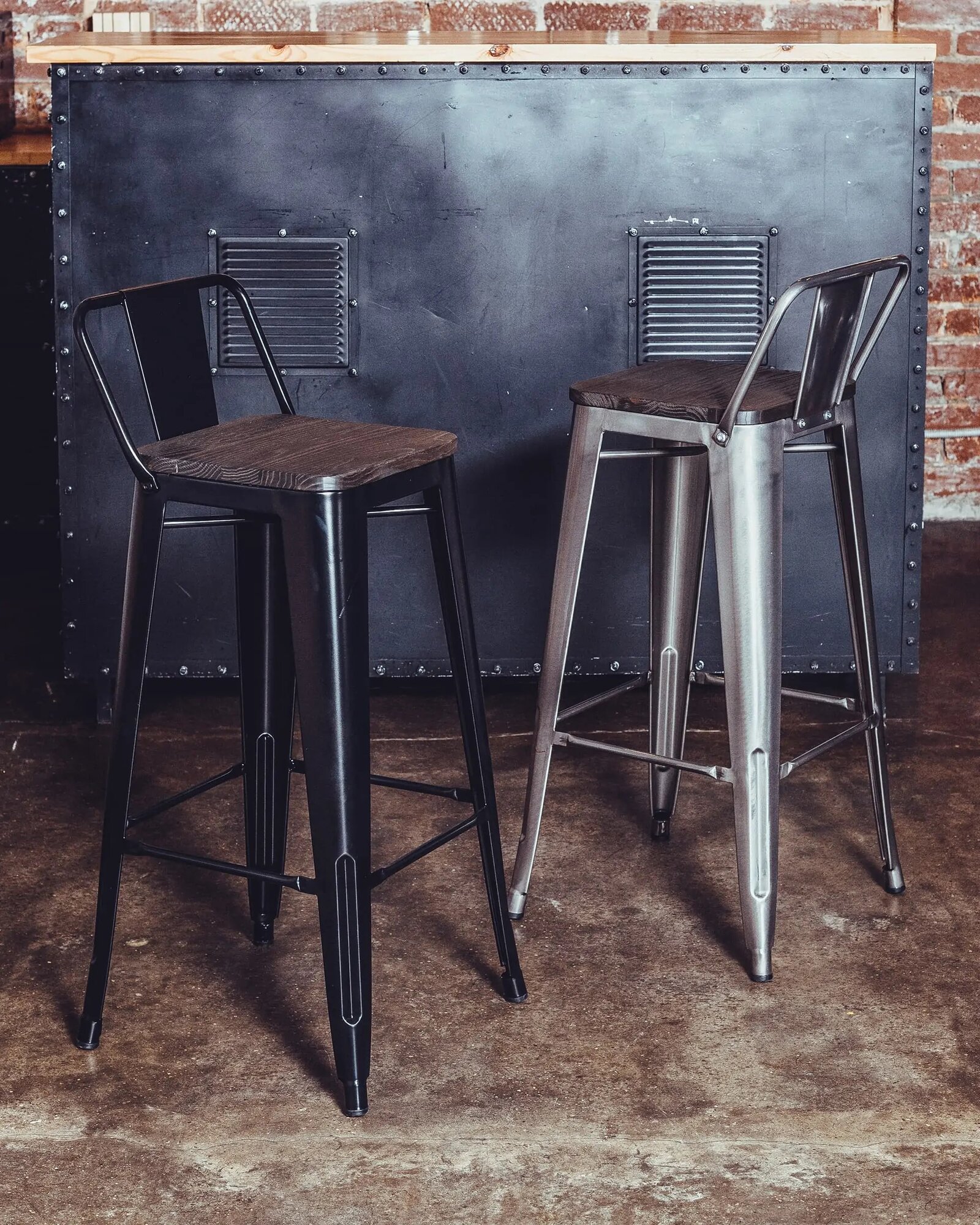 Стул полубарный TOLIX со спинкой серебристый матовый + темное дерево(комплект 2 шт)