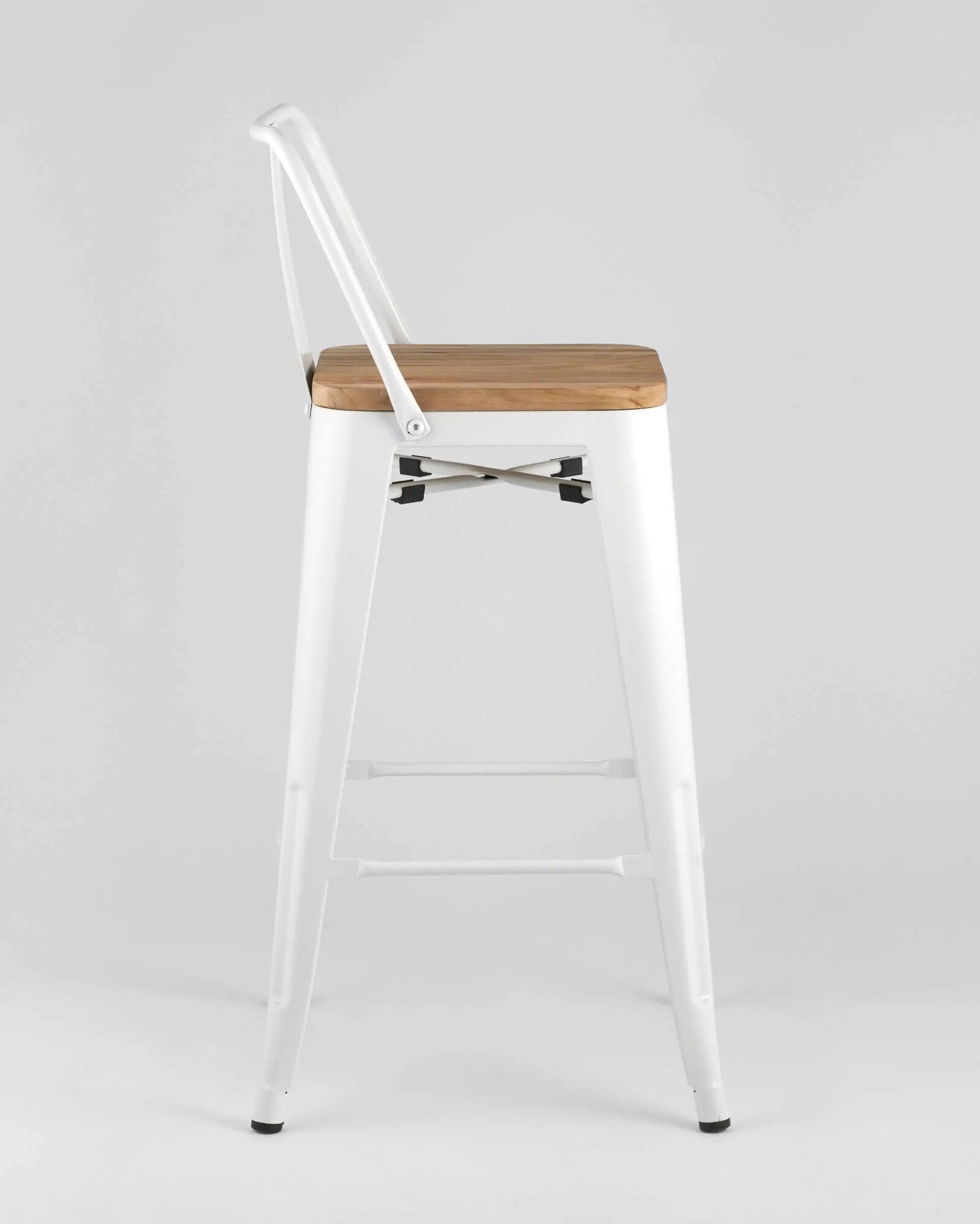 Стул полубарный Tolix STOOL GROUP белый; дерево, металл; твердое сиденье; без подлокотников