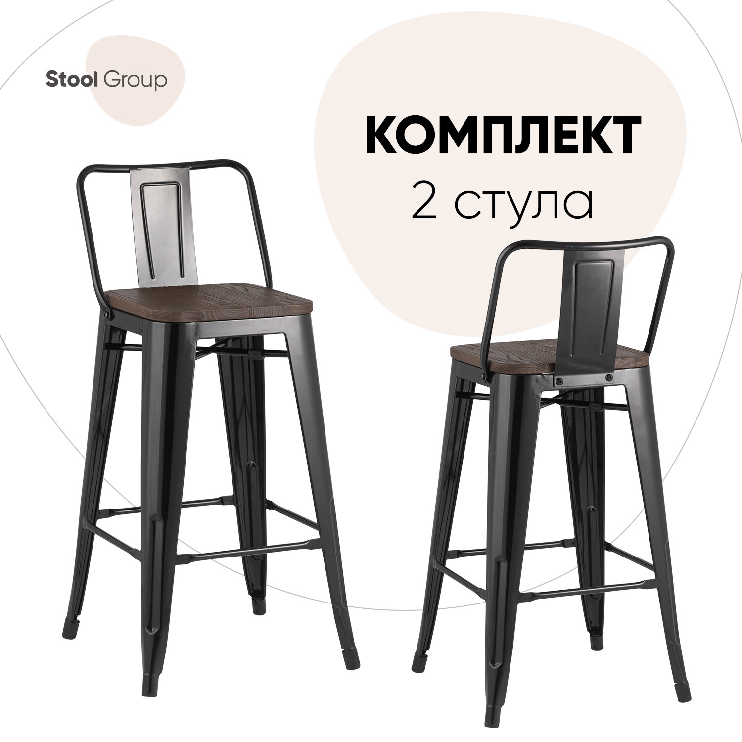 Купить Стул полубарный TOLIX со спинкой черный глянцевый + темное дерево(комплект 2 шт)