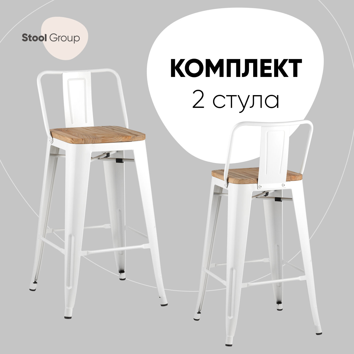 Купить Стул полубарный TOLIX со спинкой белый + светлое дерево(комплект 2 шт)