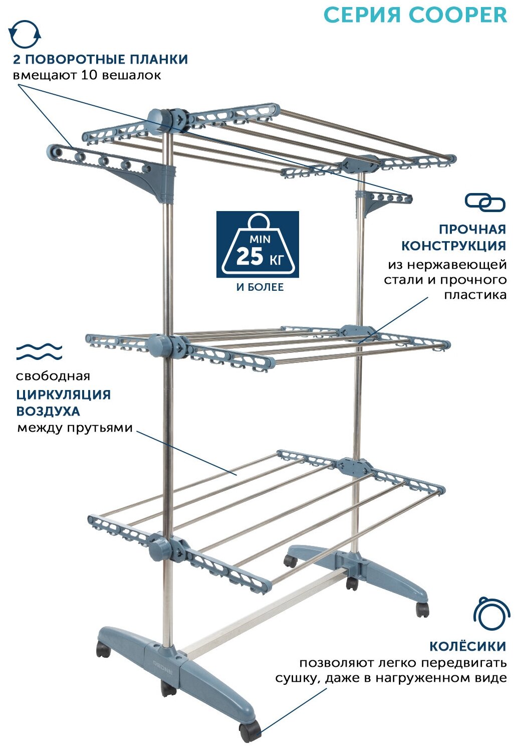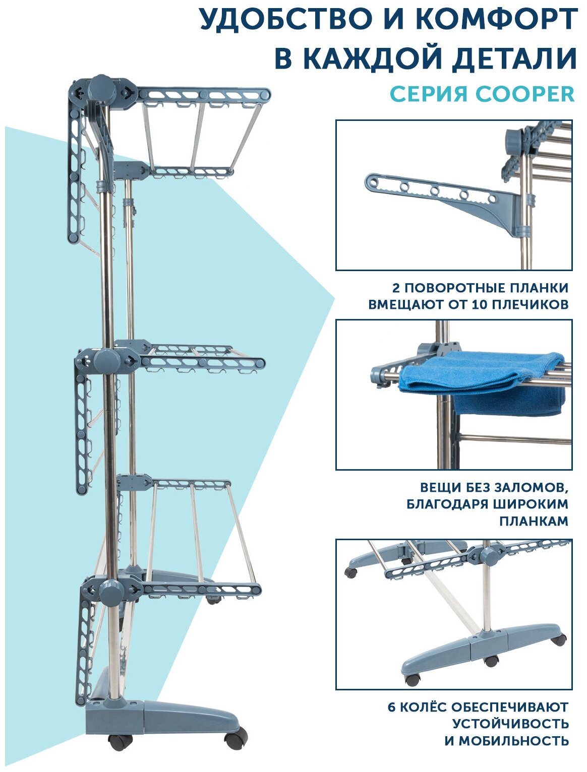 Сушилка для белья напольная REDNA усиленная раздвижная 3-х ярусная мобильная на колесах интересное: