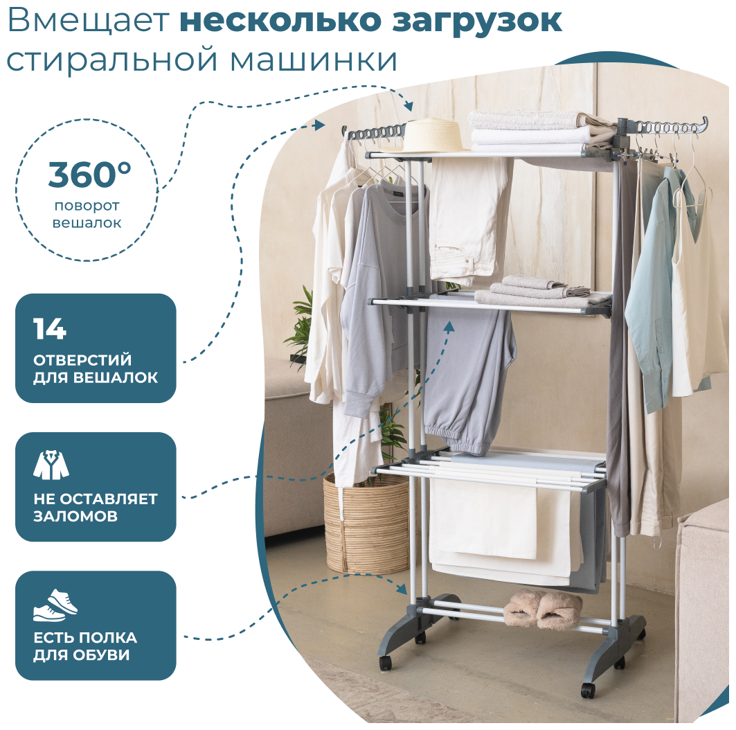 | Плюсы: | Удобная сушилка, компактная в сложенном виде |