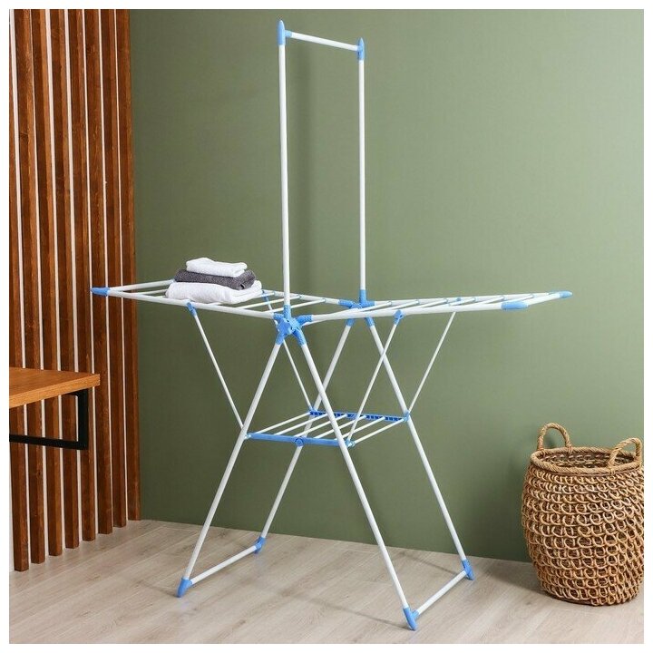 Купить Сушилка для белья напольная с перекладиной 126×49×200 см, рабочая длина 10 м, нержавеющая сталь, цвет микс