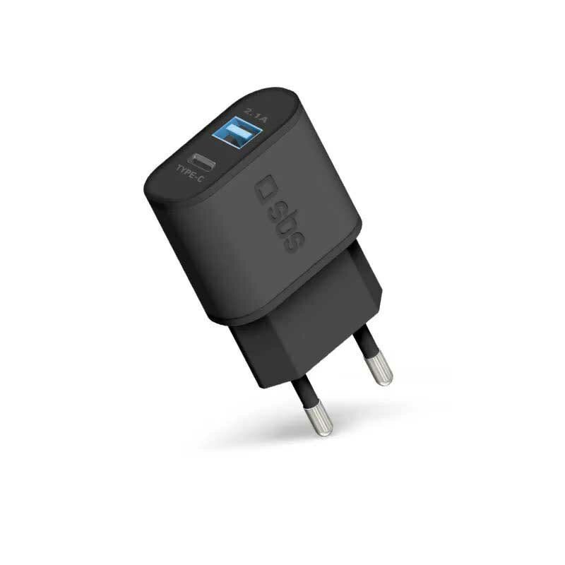 Купить Сетевое зарядное устройство SBS, USB порт+ Type-C порт, 5.1А, EU, ультра быстрая зарядка, черный (TETRUSBTC3AUL)