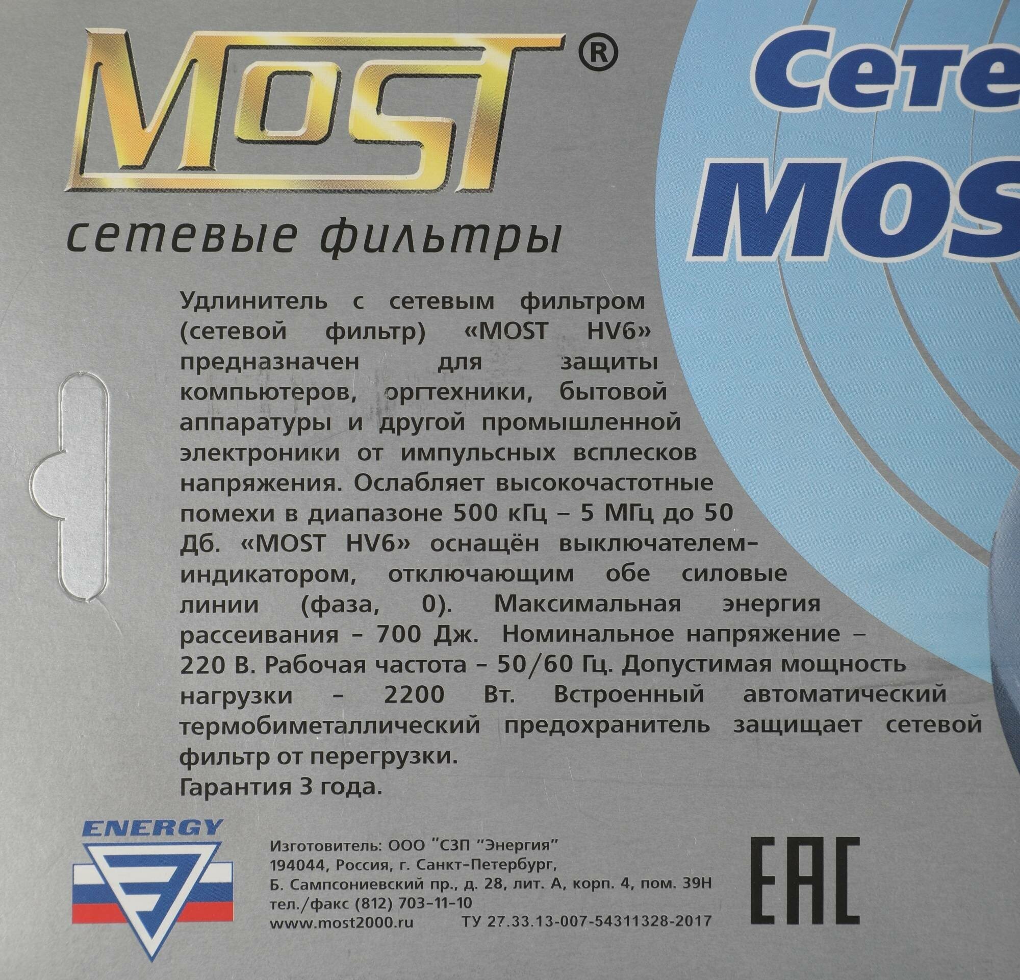 Сетевой фильтр Most HV6, 6 розеток, 5 м, белый интересное: