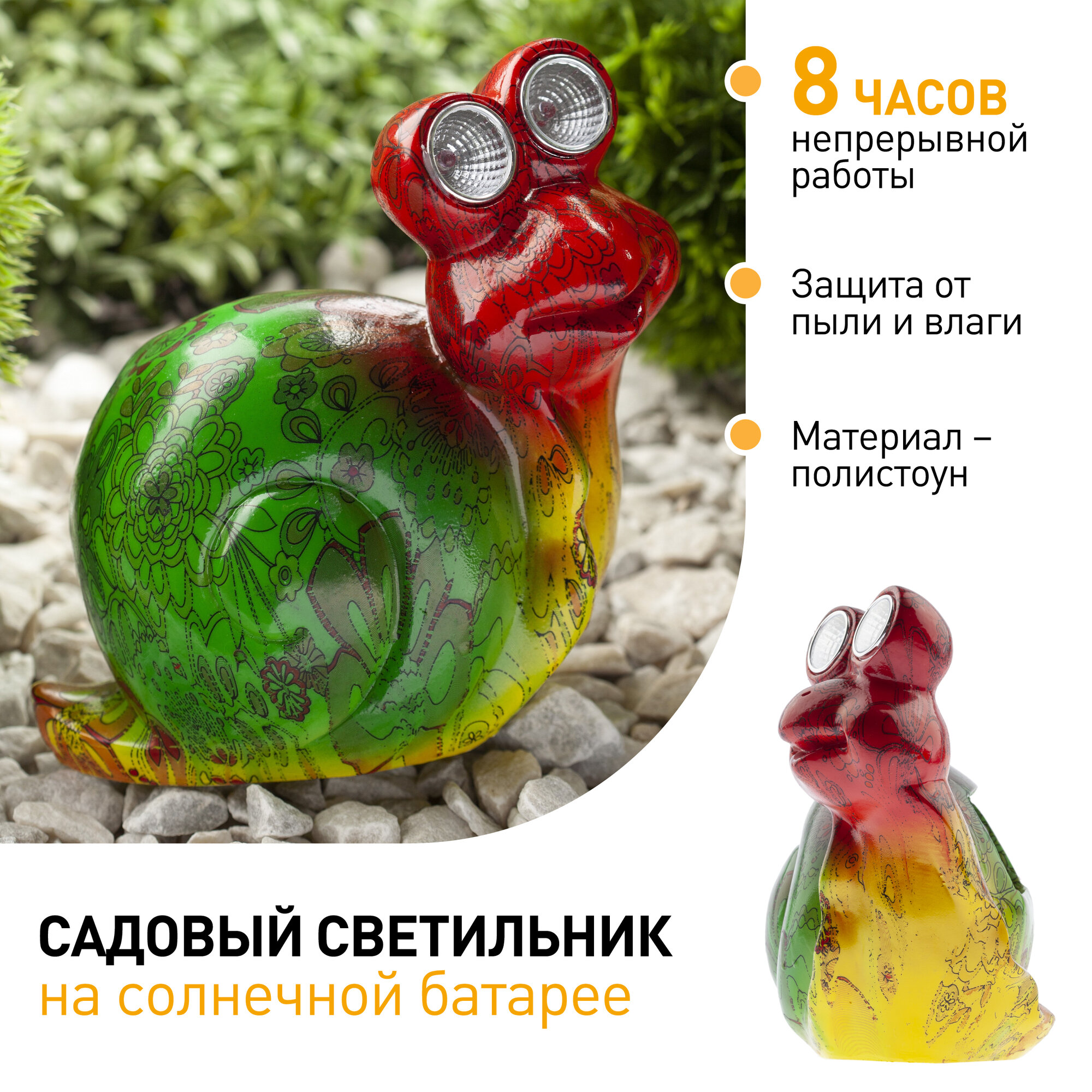 ЭРА ERAFU01-02 Садовый светильник Улитка на солнечной батарее, полистоун, 14 см Б0038495 интересное: