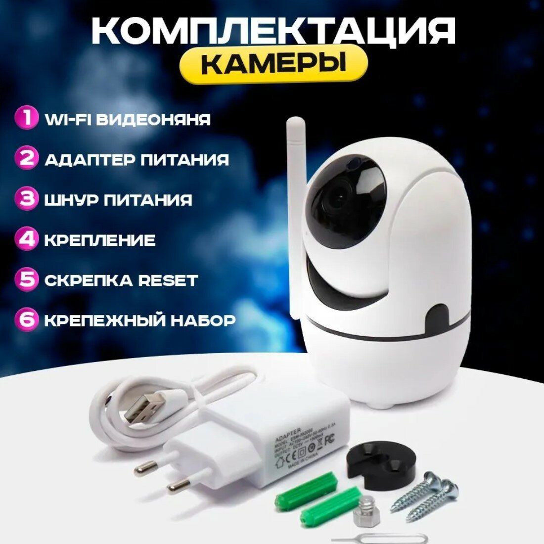 IP-камера видеонаблюдения Wi-Fi для дома с обзором 360 градусов белая