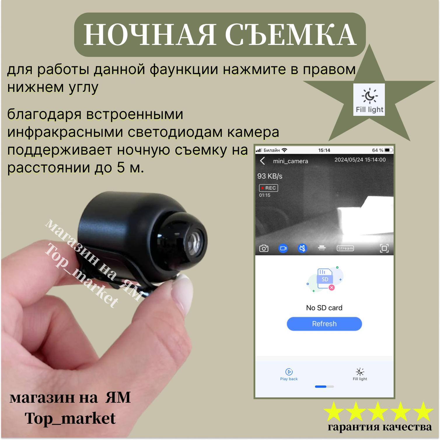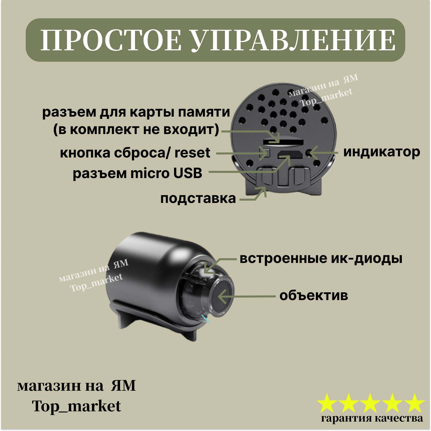 | Функции и особенности | встроенный микрофон / слот для карт памяти / Детектор движения / Режим "День/Ночь" |