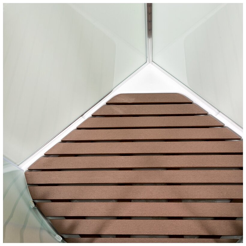 | Минусы: | При сборке обнаружилось что в боковом профиле штатные отверстия просверлены не в штатных местах . Пришлось сверлить самим так как мастер пришел и надо было собирать кабину. После сборки одна дверка не фиксируется в открытом положении . Лейка и шланг дешевые. Зеркало установлено выше головы , так что в нем смысла нет. Полка наоборот низко и мешает. |