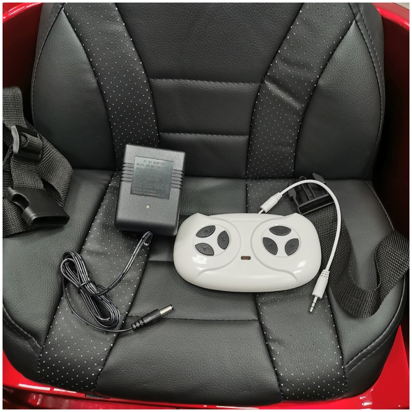 | Комплектация | амортизаторы / боковые зеркала заднего вида / зарядное устройство / кабель AUX / клаксон / музыкальные колонки / педаль газа / пульт ДУ / ремни безопасности |