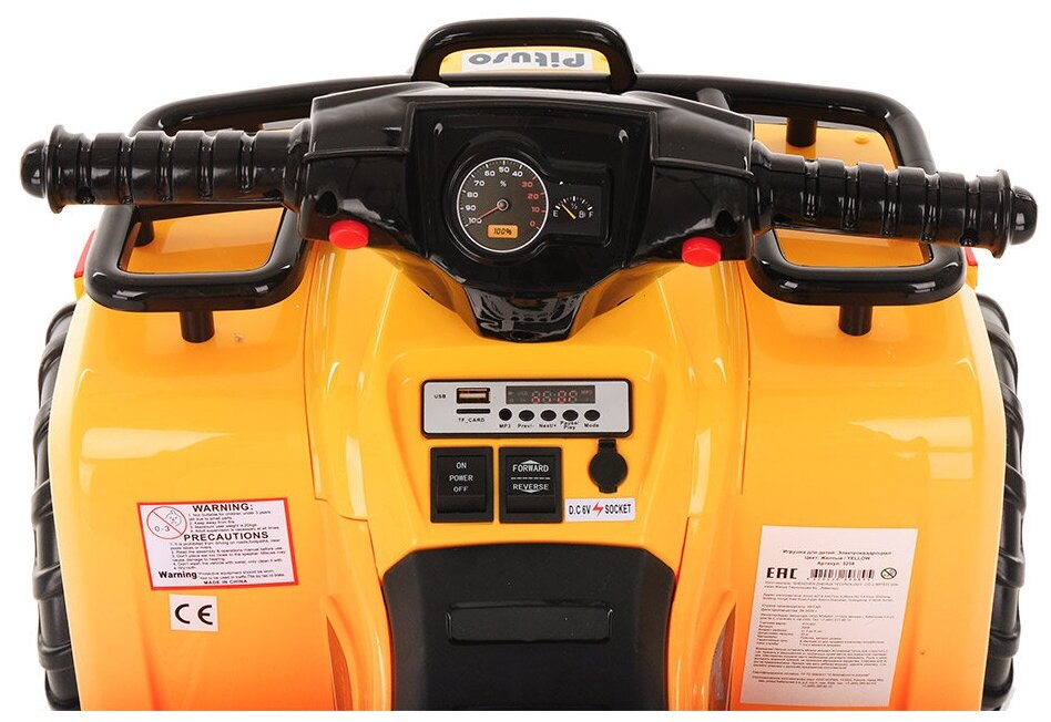 Электромобиль детский, квадроцикл Pituso "5258 Yellow", 6V/4.5Ah,20W*1, дисплей, МР3 порт, USB, цвет желтый машина для детей на аккумуляторе, свет, звук