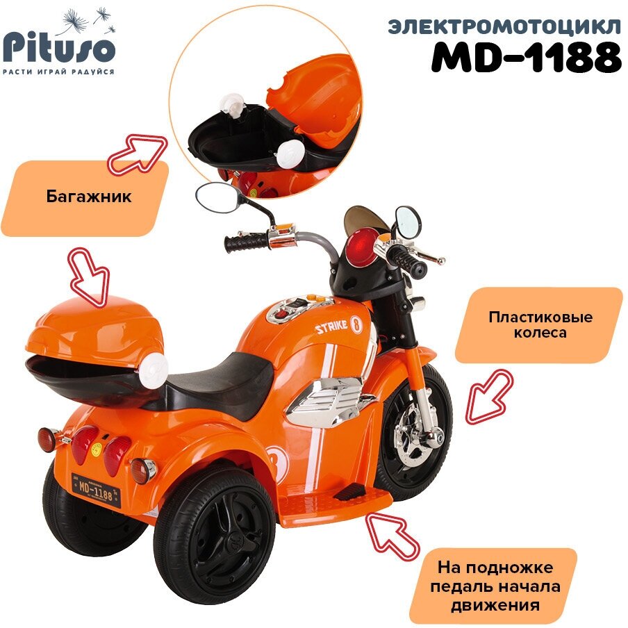 Электро-мотоцикл Pituso 1188 оранжевый Детский электромотоцикл электро-трицикл электромобиль подарок для детей для мальчиков для девочек