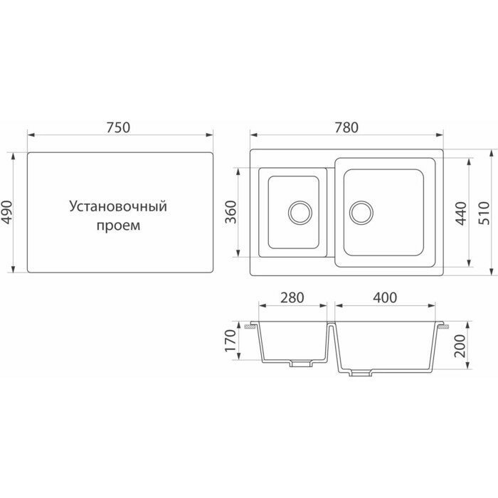 Мойка для кухни GreenStone GRS-76K-343, врезная, 780 x 510 мм, антрацит