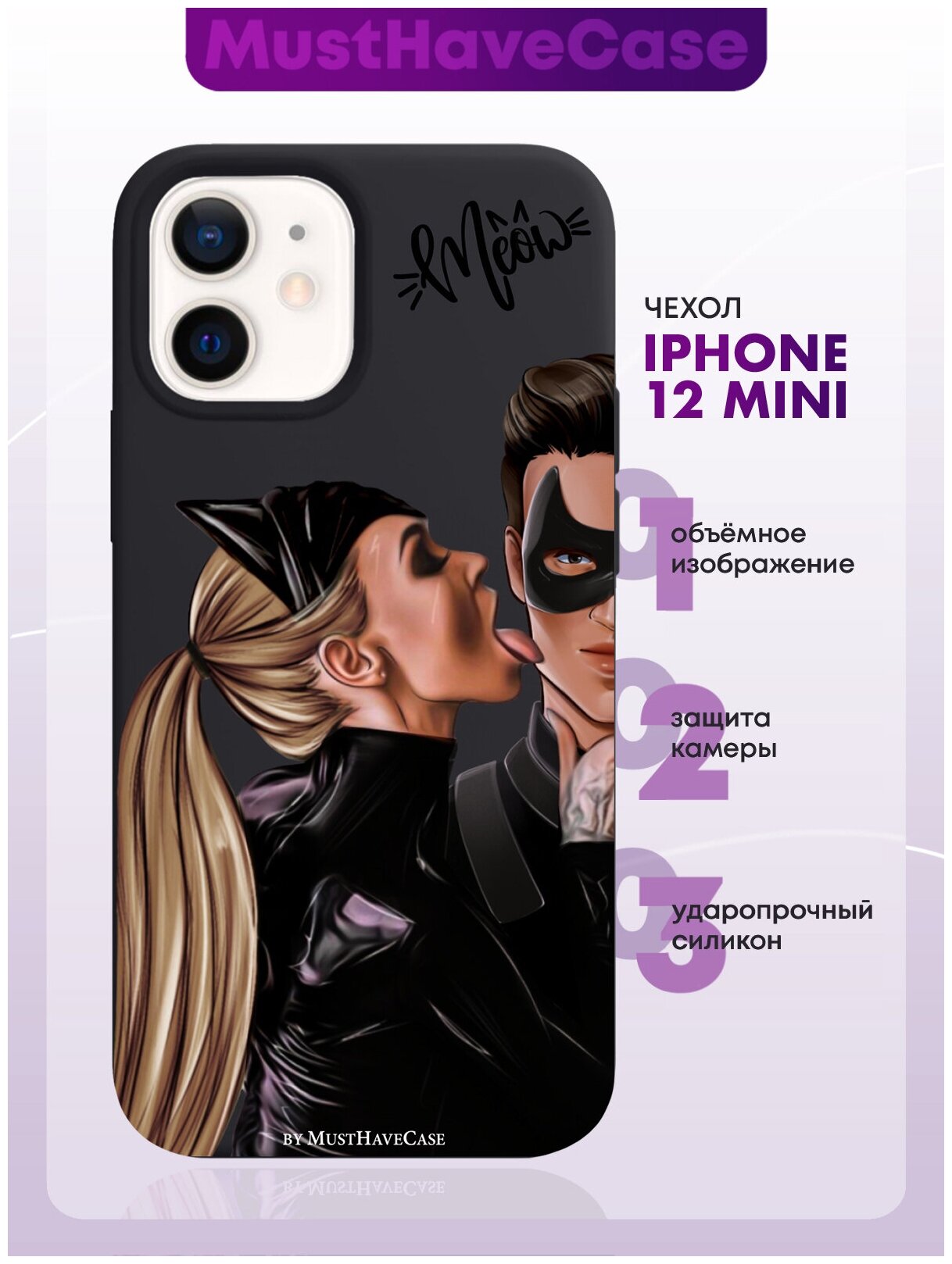 Черный силиконовый чехол MustHaveCase для iPhone 12 Mini Кошечка и мишка для Айфон 12 Мини