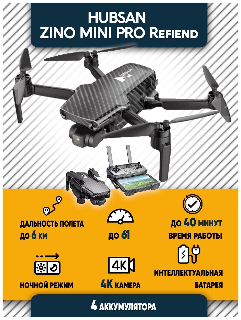Квадрокоптер HUBSAN ZINO MINI PRO Refiend 4K камера, черный, 4 батареи интересное: