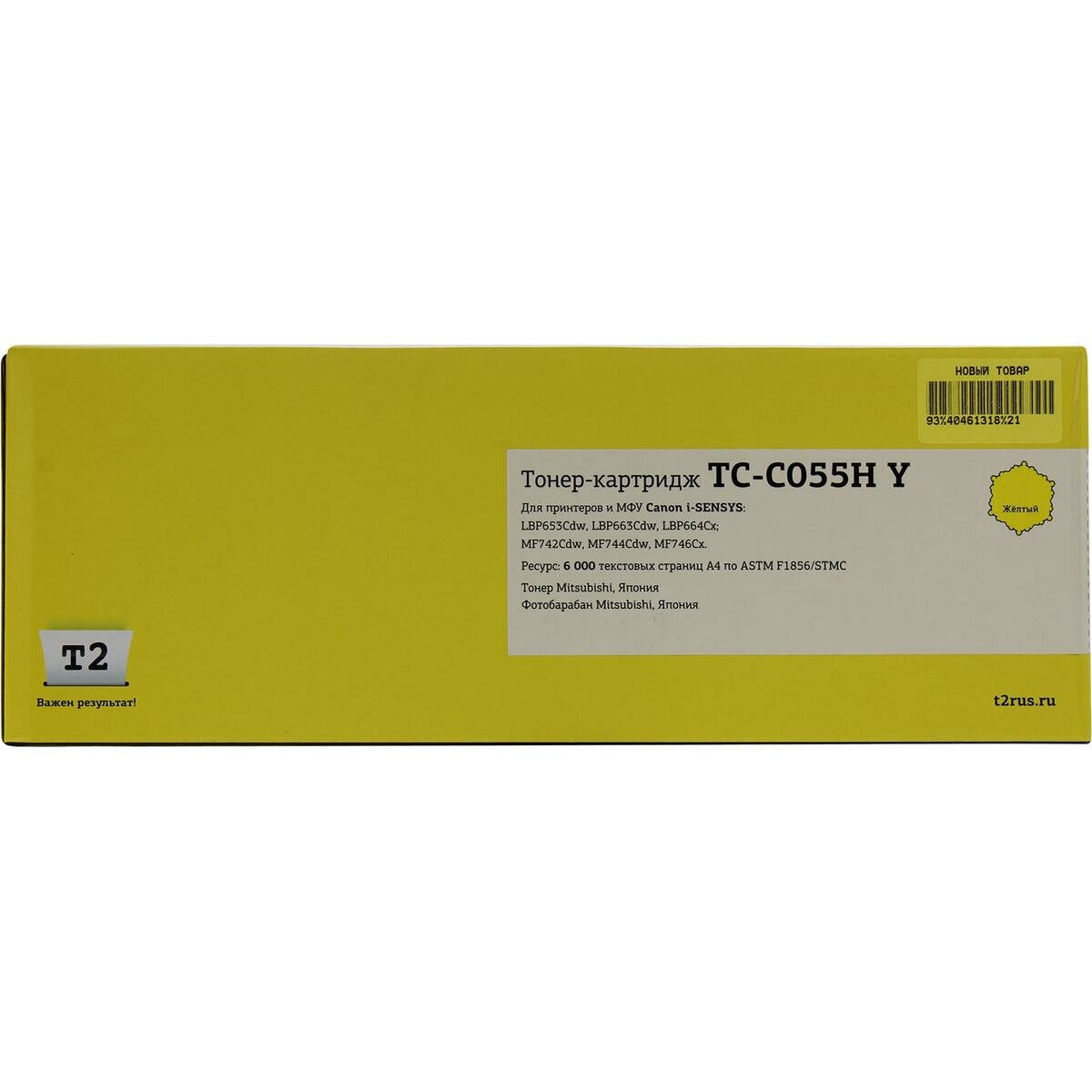 Картридж лазерный T2 TC-C055H Y для Canon i-SENSYS LBP663/664/MF742/744 (6000 стр.) Желтый, с чипом
