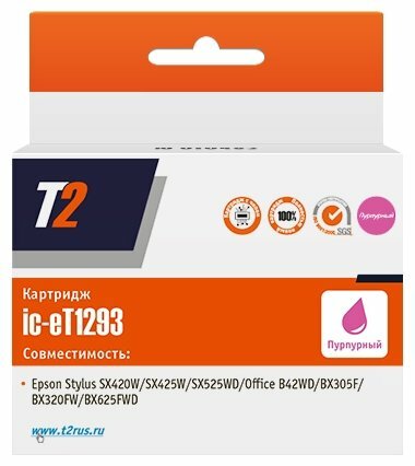 T2 Расходные материалы C13T12934010 Картридж IC-ET1293 для EPSON Stylus SX420W SX425W SX525WD Office B42WD BX305F BX320FW BX625FWD пурпурный с чипом