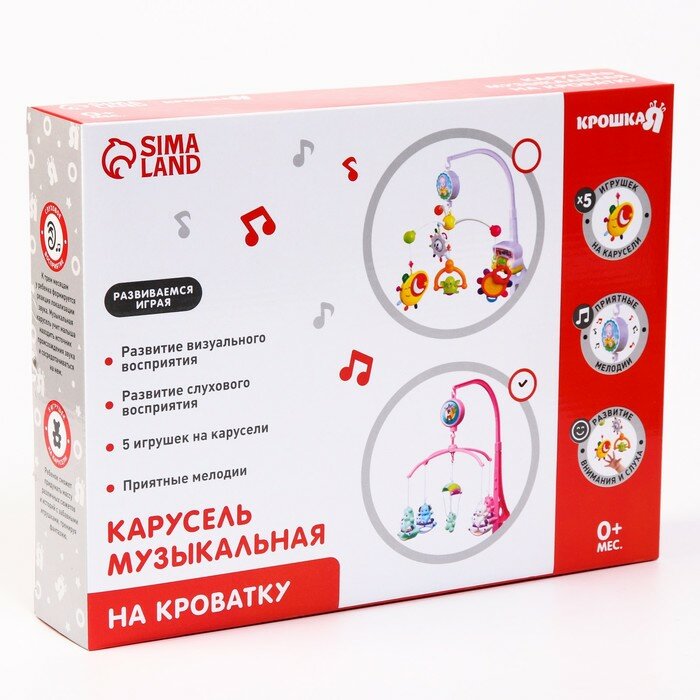 Купить Мобиль музыкальный «Зверюшки на качалке», заводной, наклейка микс