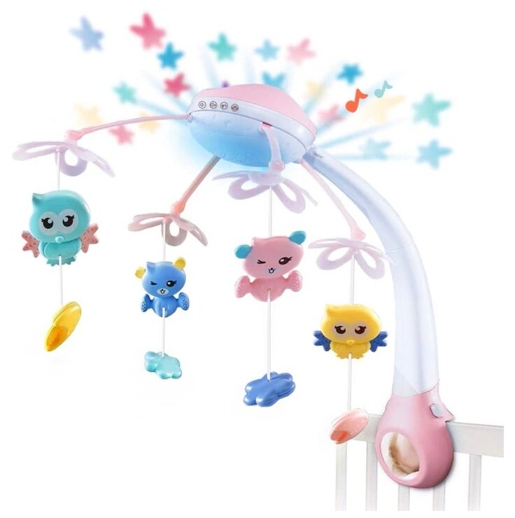 Купить Мобиль музыкальный "Птички", с ночником + пульт, цвет