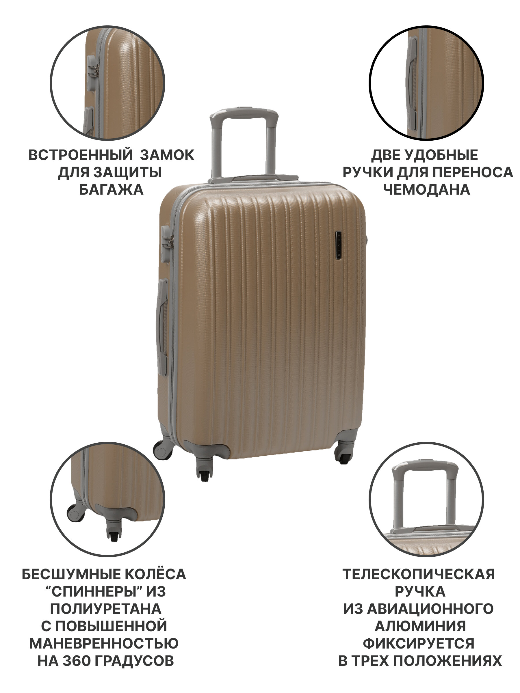 Чемодан на колесах дорожный средний багаж для путешествий женский m TEVIN размер М 64 см 62 л прочный и легкий abs пластик Золотой