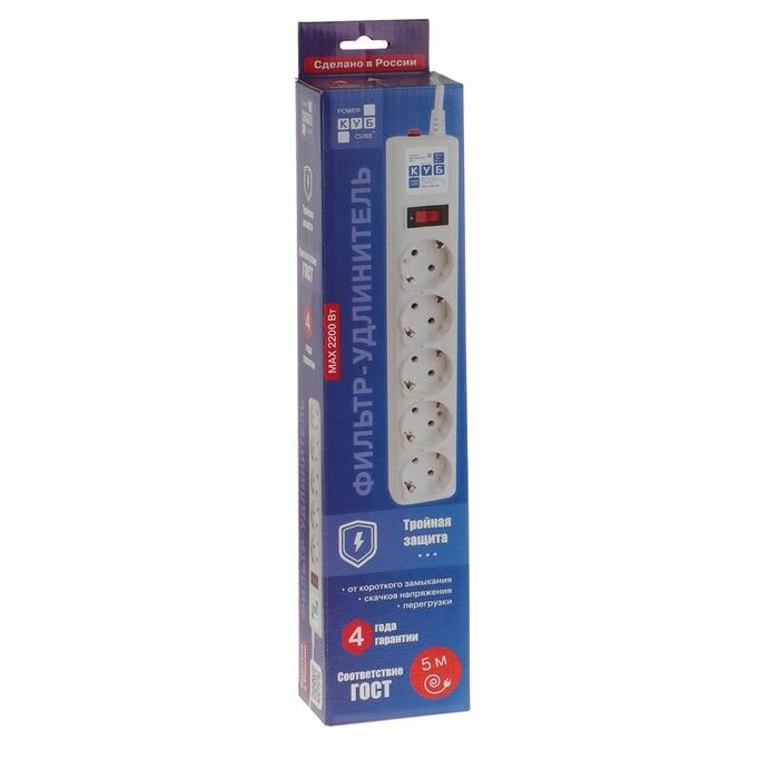 Купить Сетевой фильтр Power Cube, 5 розеток, 5 м, 10 А, 2200 Вт, белый