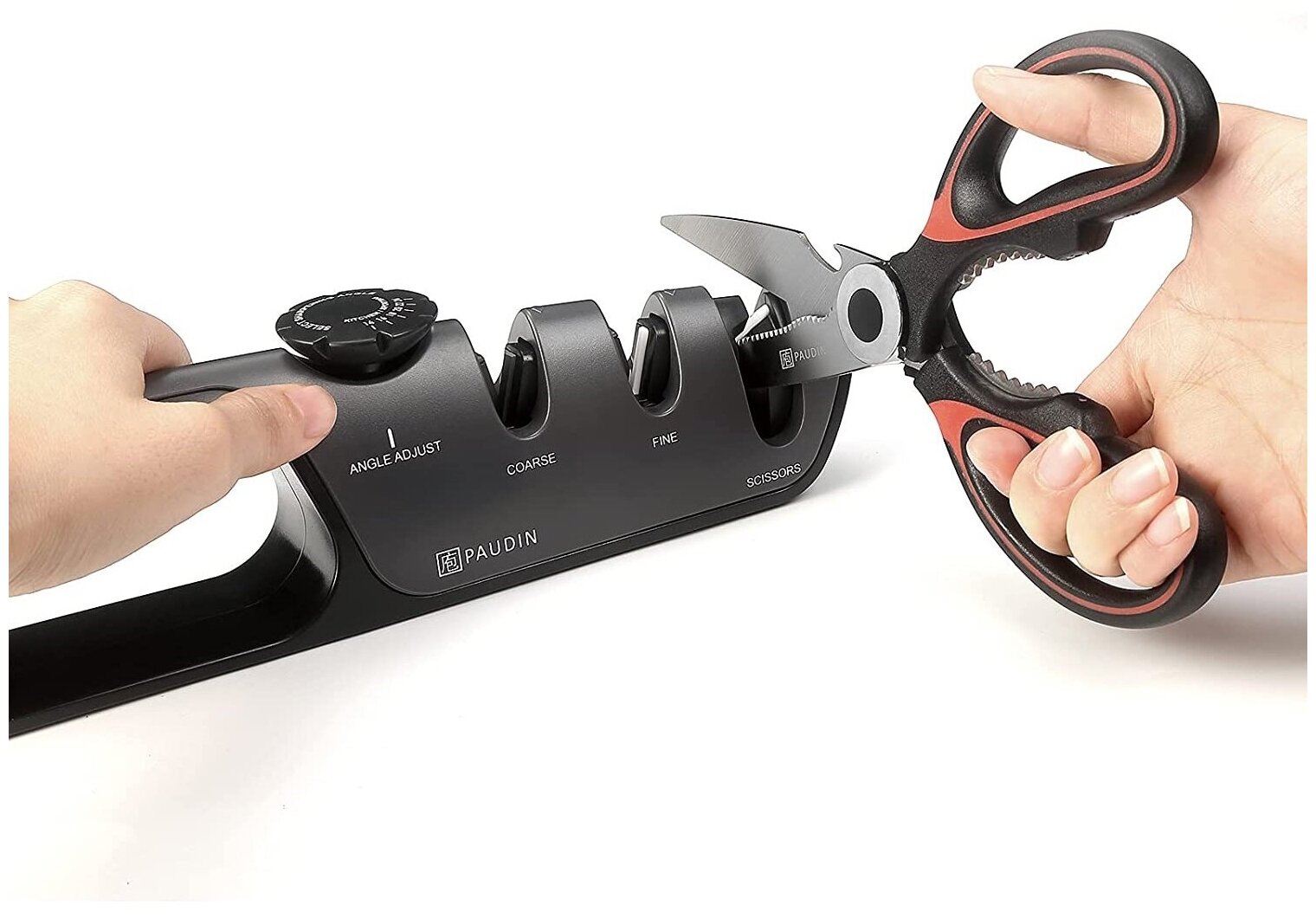 Купить PAUDIN Pro / Точилка для ножей и ножниц ножеточка ручная настольная, механическая, трехступенчатая, регулируемая