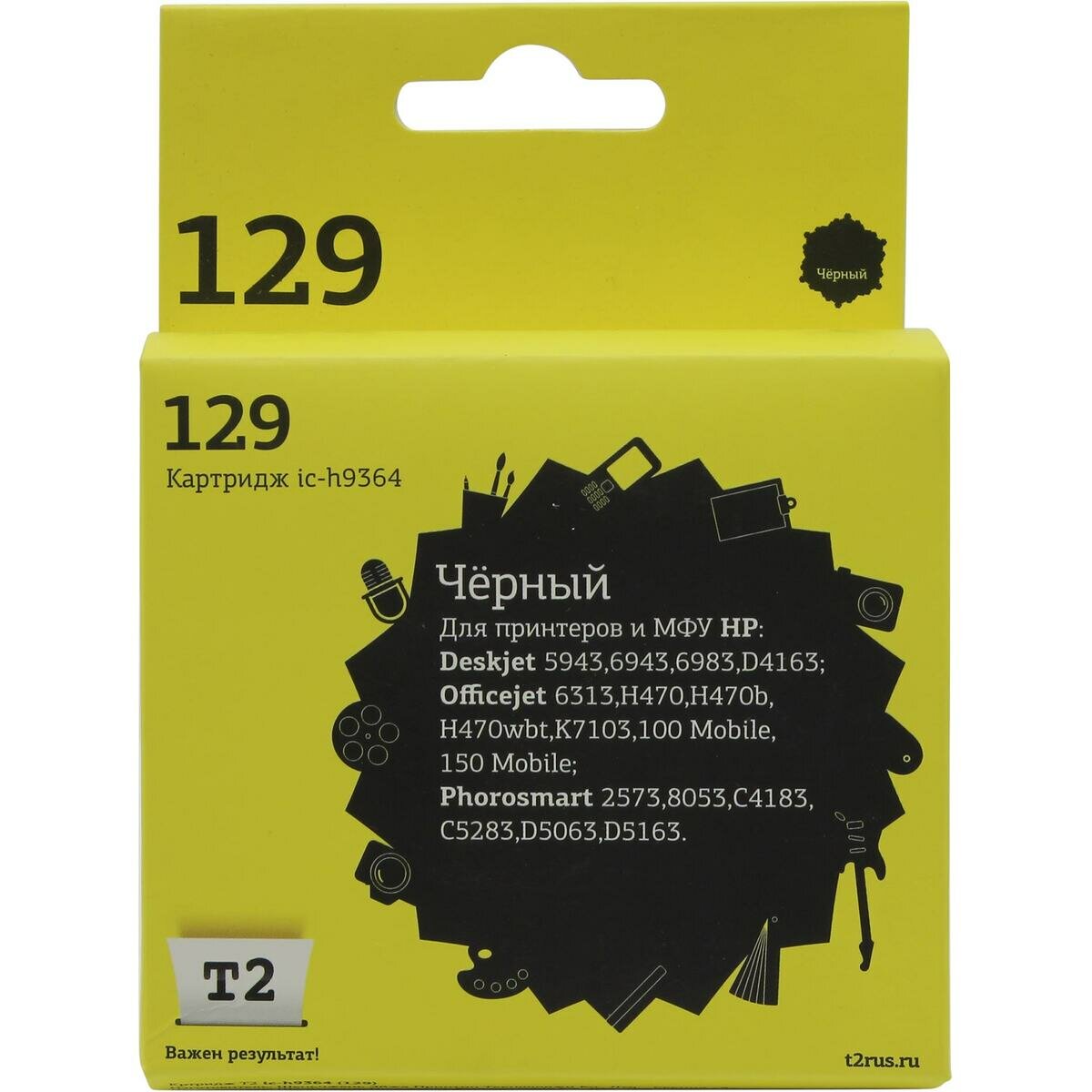 T2 Расходные материалы C9364HE Картридж IC-H9364 129 для HP Deskjet 5943 6943 D4163 Photosmart 1215 1315 C5283 D5163, черный, 220 стр.